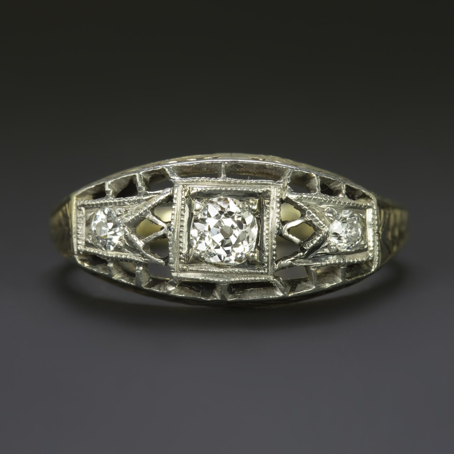 Even though the theory for the modern round brilliant cut (RBC) was in place since the end of the 19th century, these theories were not put into practice for 30-40 years later during the Art Deco era. However, this dramatic change did not happen overnight as the world slowly transitioned to this new round brilliant form. Transitional Cut diamonds are not a specific set of proportions or consistent look from stone to stone, but notable shifts are occurring in diamond cutting abilities at this time period where we see a transition from Old European Cuts to modern Round Brilliant Cuts.