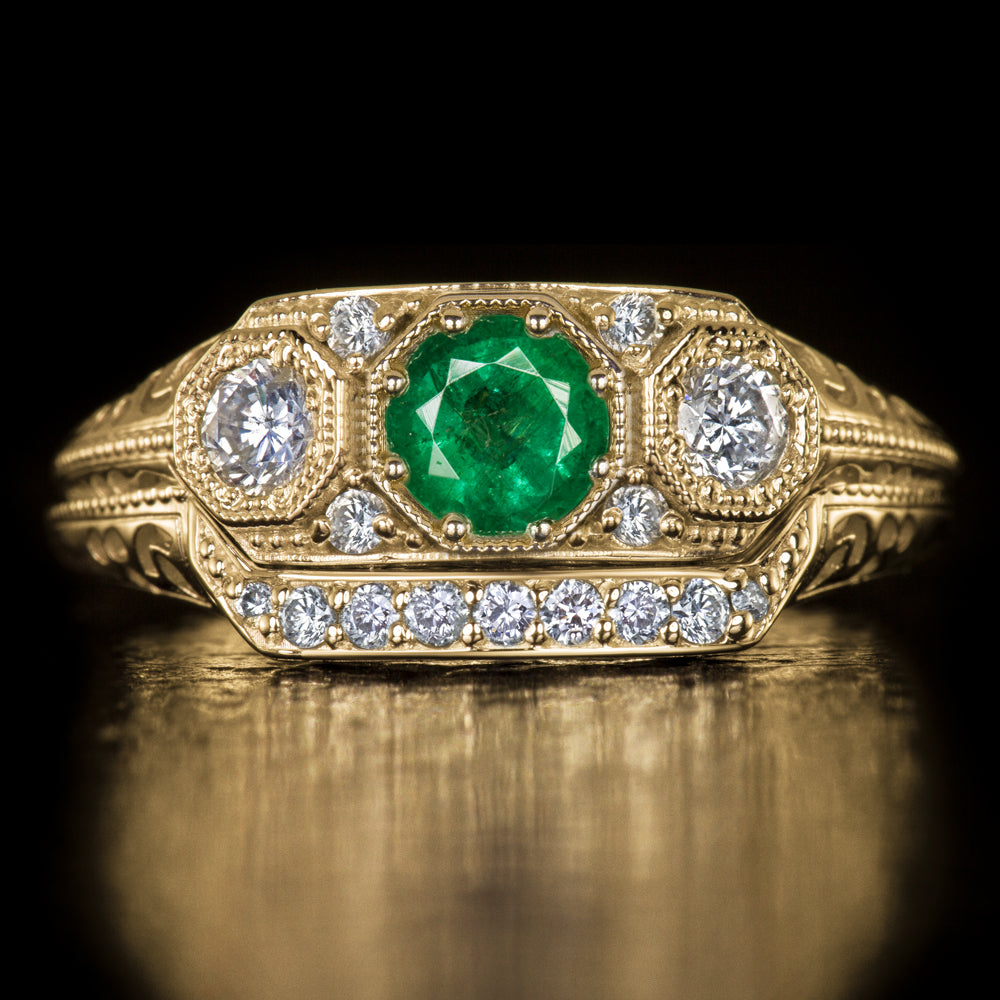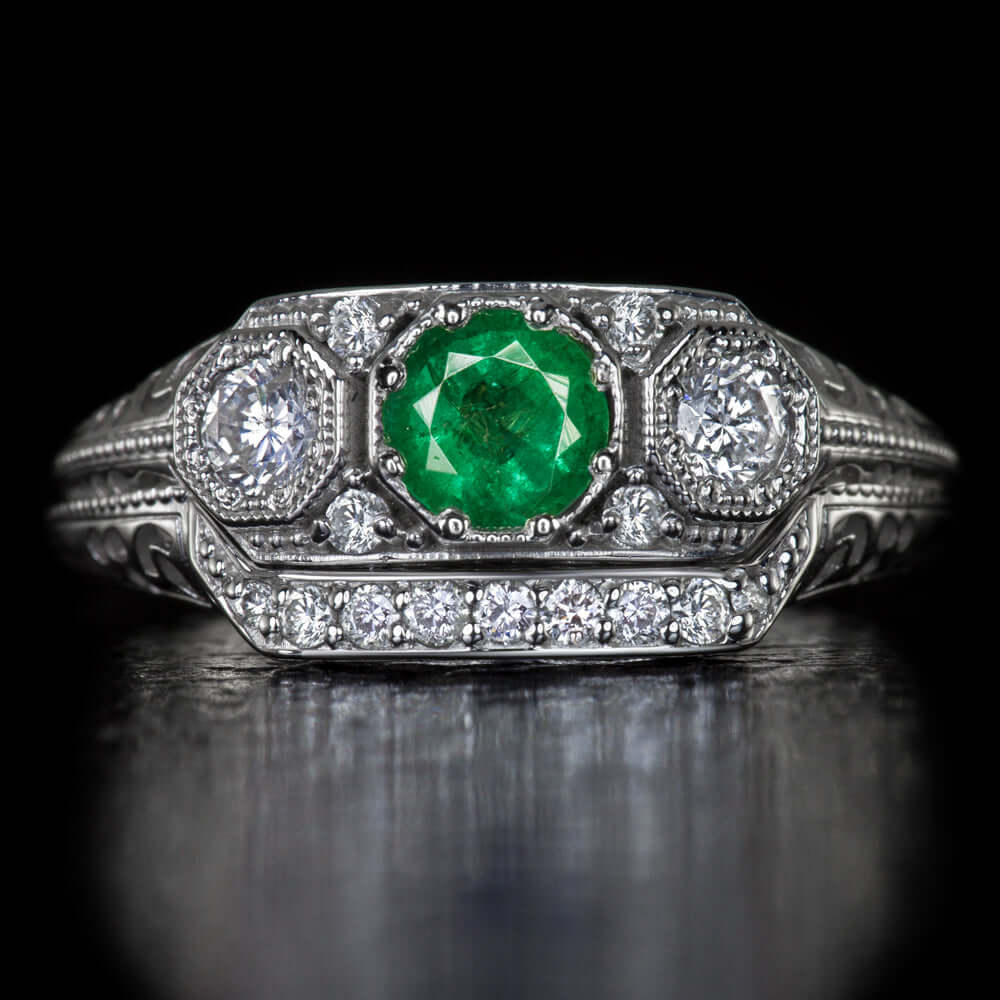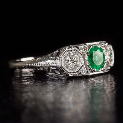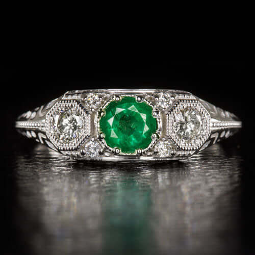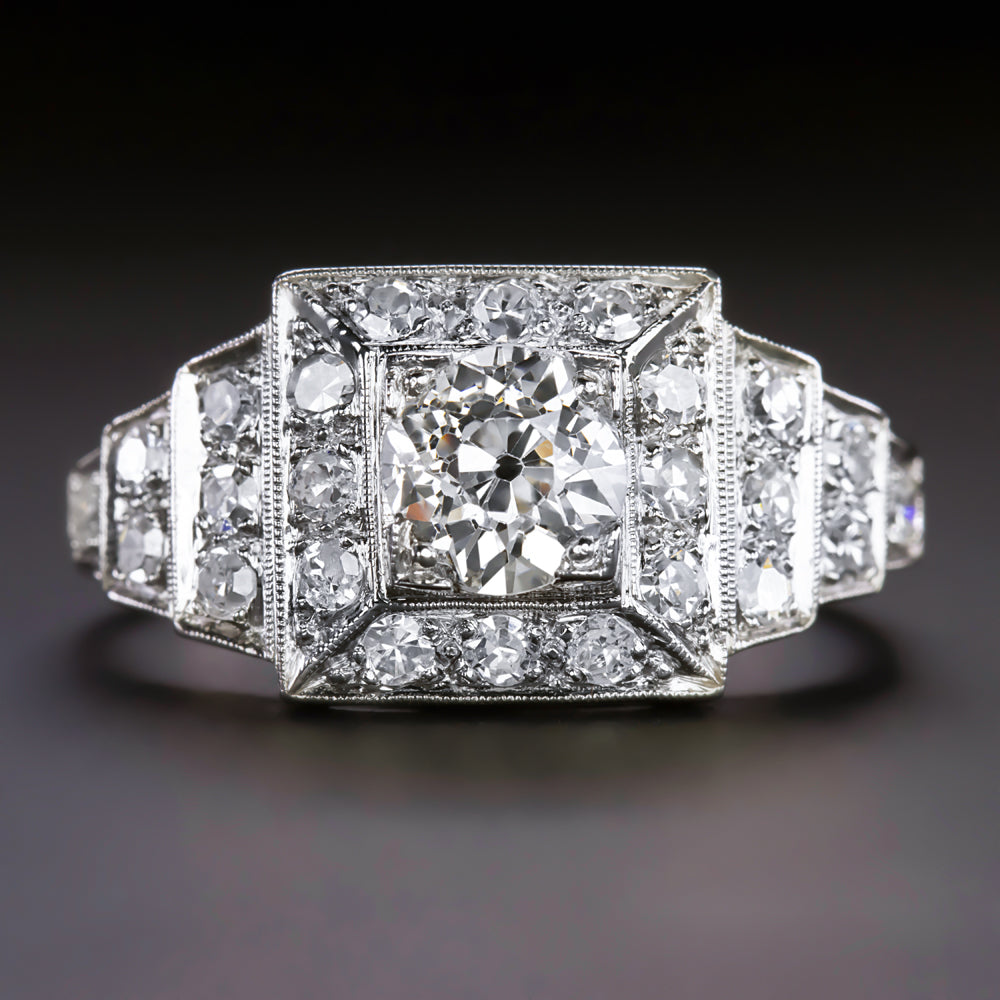 Even though the theory for the modern round brilliant cut (RBC) was in place since the end of the 19th century, these theories were not put into practice for 30-40 years later during the Art Deco era. However, this dramatic change did not happen overnight as the world slowly transitioned to this new round brilliant form. Transitional Cut diamonds are not a specific set of proportions or consistent look from stone to stone, but notable shifts are occurring in diamond cutting abilities at this time period where we see a transition from Old European Cuts to modern Round Brilliant Cuts.