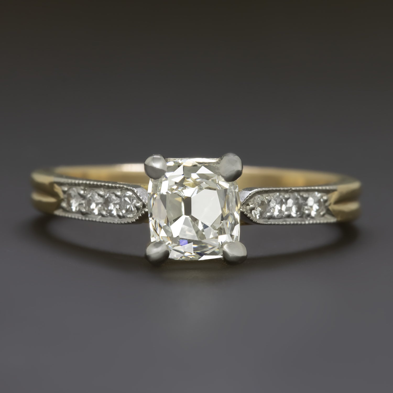 Since there is not always a consistent and symmetrical shape in the natural stone, diamonds of this era tend to be off-round without a symmetrical outline, often in rounded square and rectangular shapes. Old mine cuts were the most popular diamond shape in the 19th century and its timeless design is reflected in the demand for Cushion Brilliant cuts today.