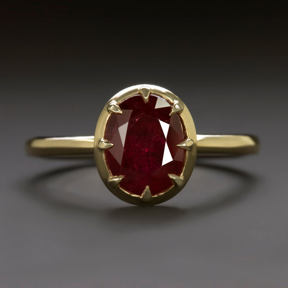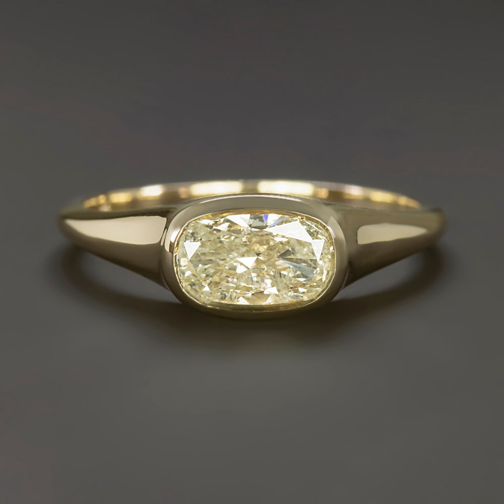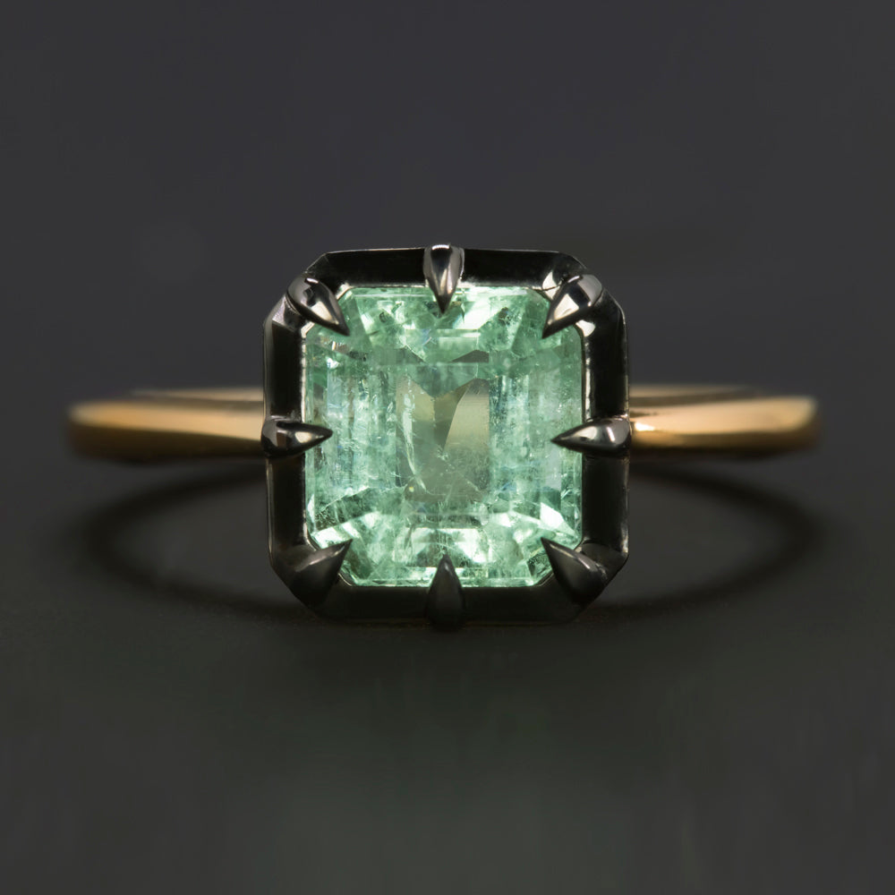The button back setting, also known as the cut back collet or closed-back setting, was a hallmark of Georgian-era jewelry, popular from the early 18th to mid-19th century. This technique involves a solid metal enclosure at the back of the stone, designed to protect the gem while adding depth and radiance by reflecting light. It remained popular through the Victorian era, reflecting its enduring appeal and versatility. In Zendaya’s ring, this vintage detail is reimagined in 18k yellow and white gold, creating a seamless blend of old-world craftsmanship and modern sophistication.