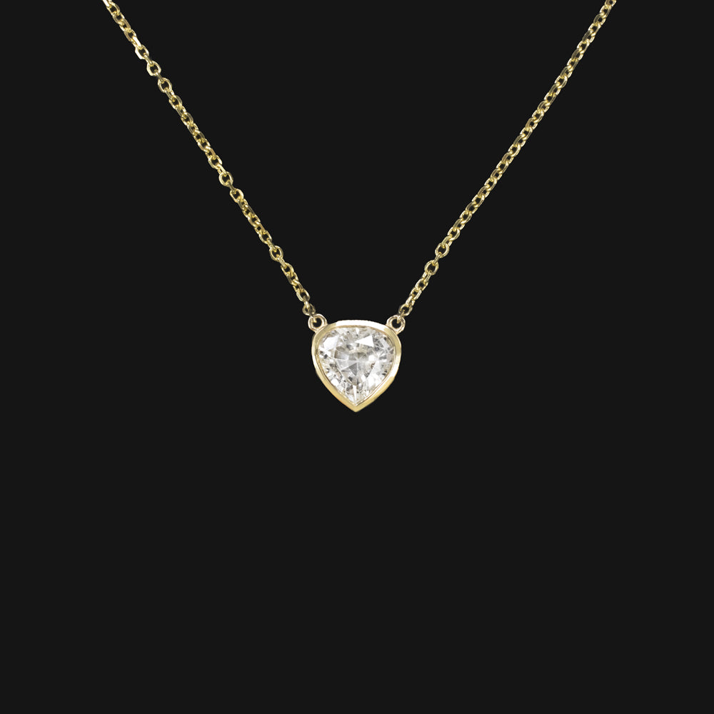 WHITE SAPPHIRE PENDANT NECKLACE PEAR SHAPE BEZEL 14k YELLOW GOLD NATURAL 1.36ct