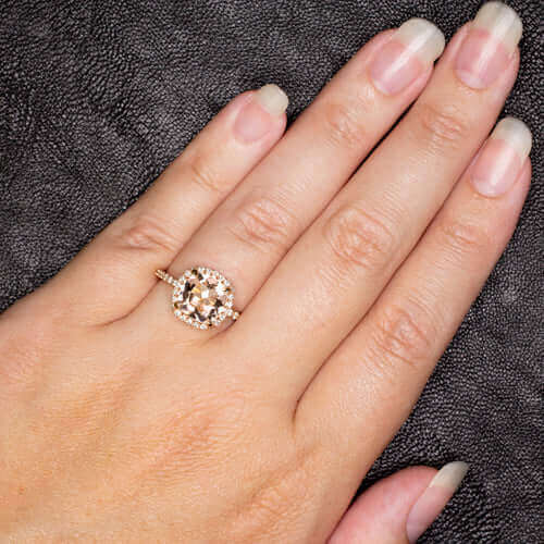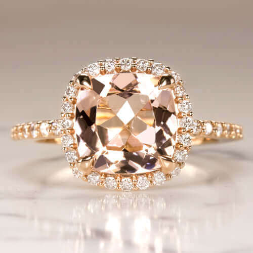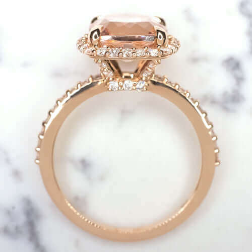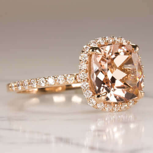 2.6ct PEACH MORGANITE .53ct DIAMOND CUSHION HALO ENGAGEMENT RING ROSE GOLD PAVE