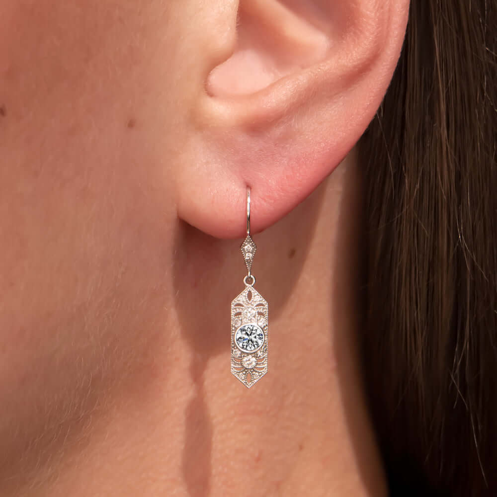 0.78ct NATURAL DIAMOND VINTAGE STYLE DROP EARRINGS ART DECO GEOMETRIC CLASSIC