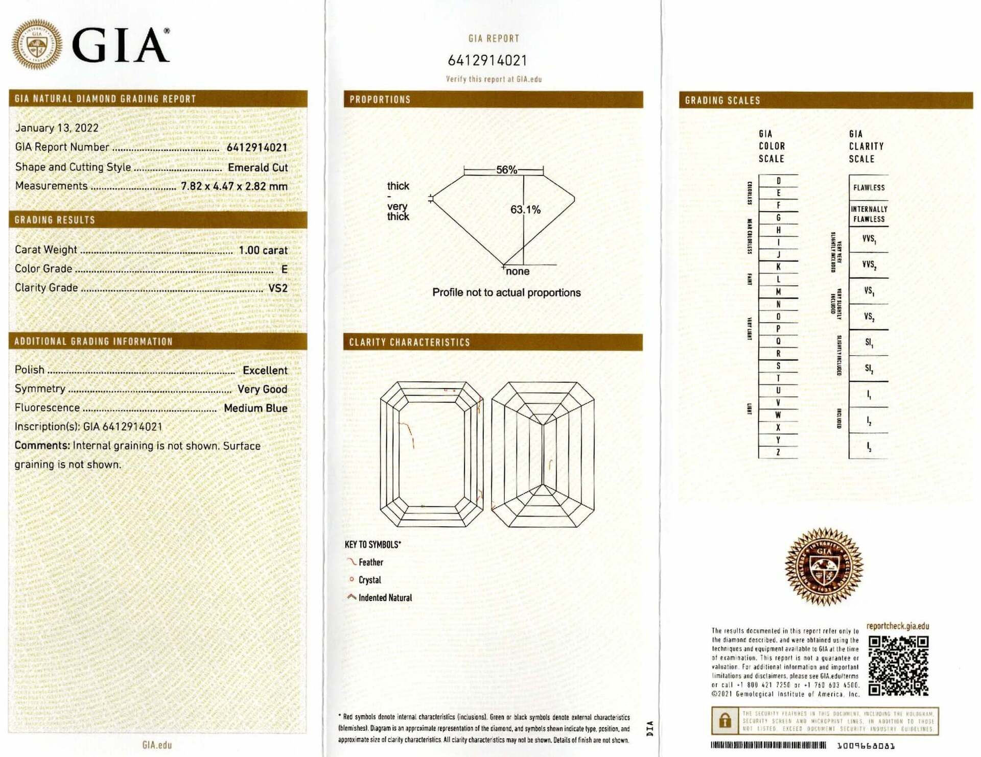 1ct GIA CERTIFIED E VS2 DIAMOND SOLITAIRE ENGAGEMENT RING EMERALD CUT PLATINUM