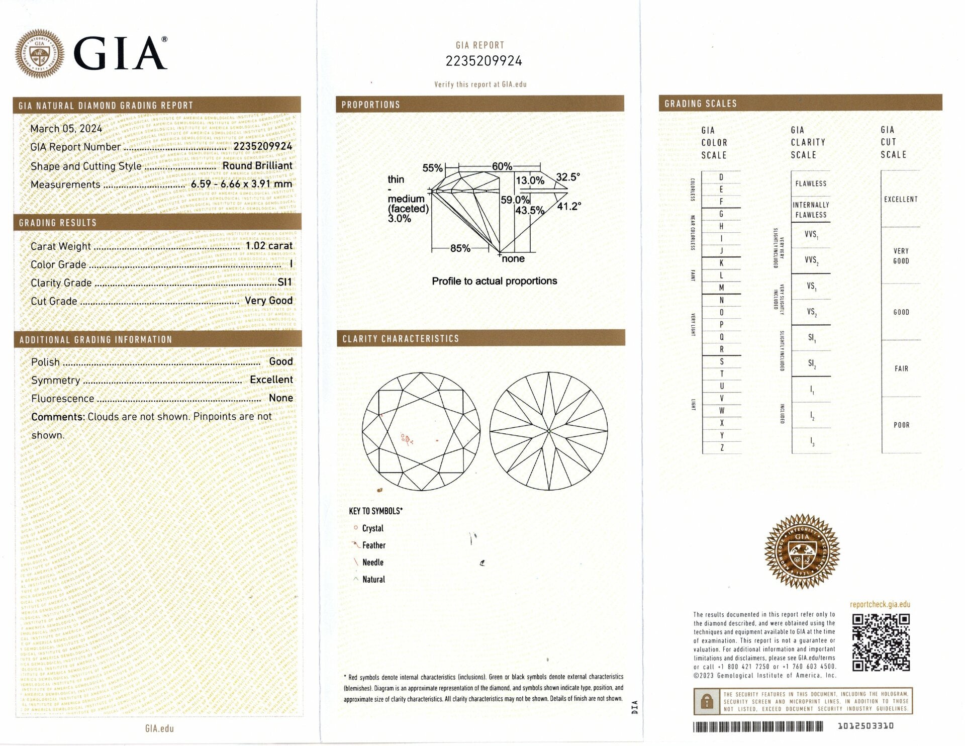 1 CARAT DIAMOND GIA CERTIFIED I SI1 VERY GOOD CUT ROUND BRILLIANT LOOSE 1ct