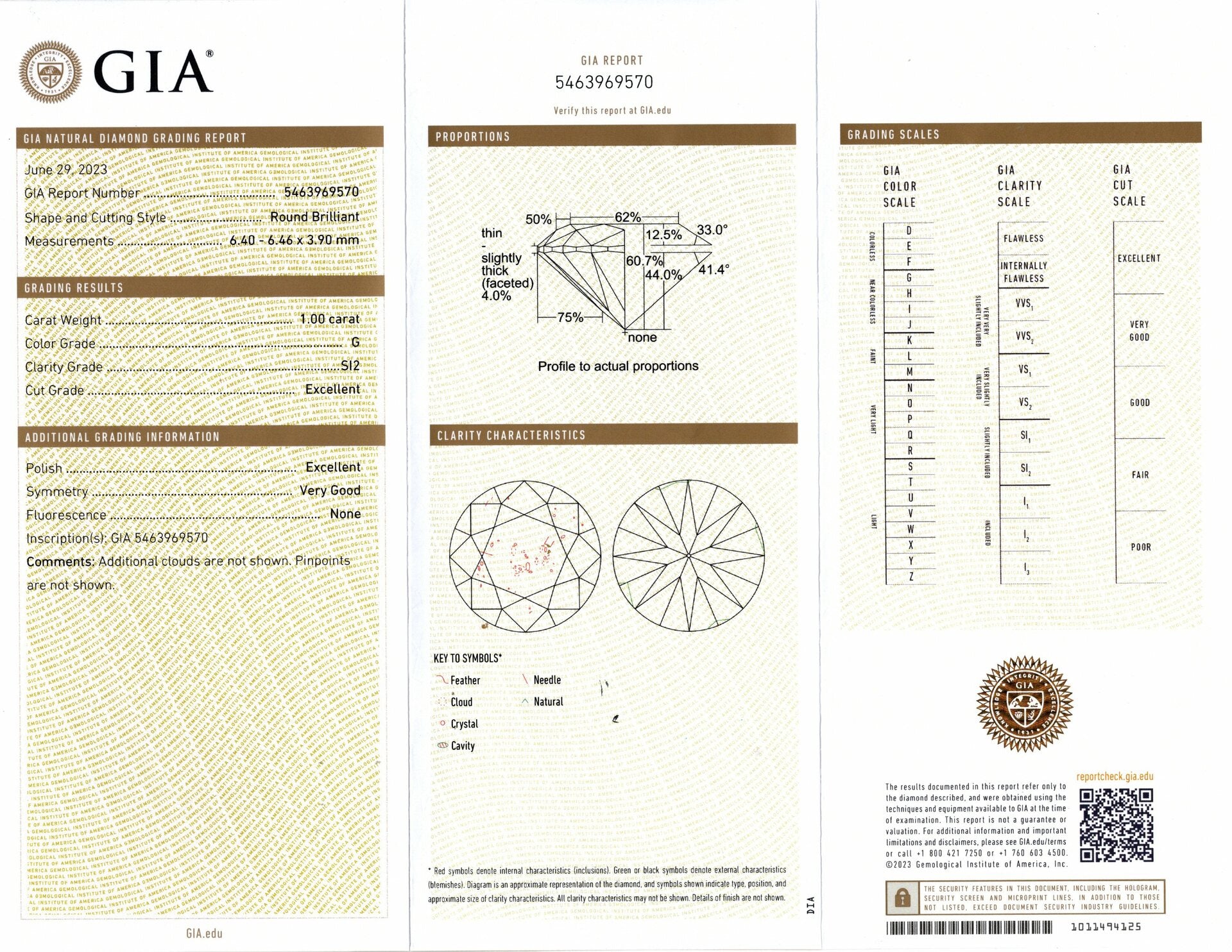 1 CARAT EXCELLENT CUT DIAMOND GIA CERTIFIED G SI2 ROUND BRILLIANT LOOSE NATURAL