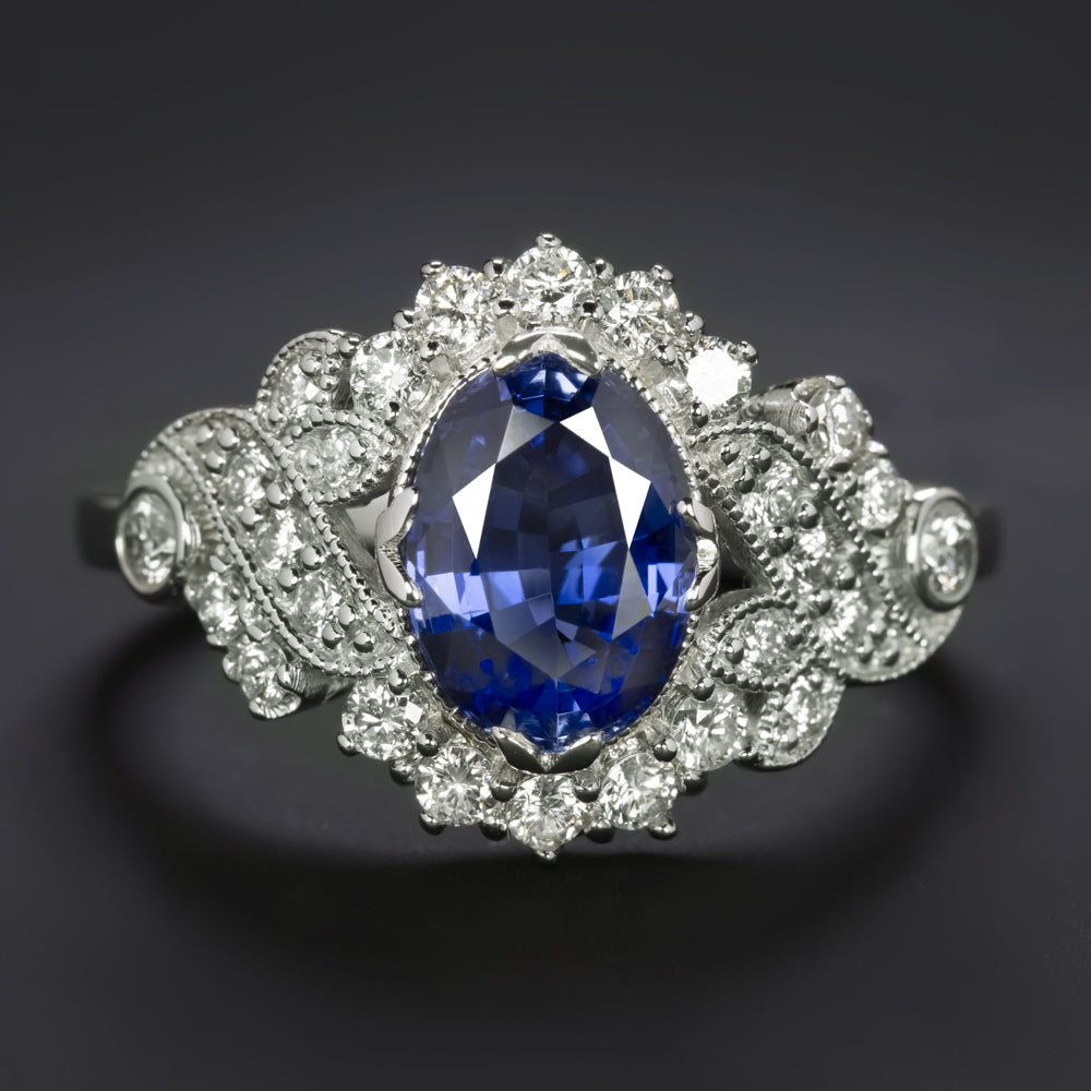 2.26ctw SAPPHIRE DIAMOND VINTAGE STYLE COCKTAIL RING OVAL CUT ENGAGEMENT NATURAL