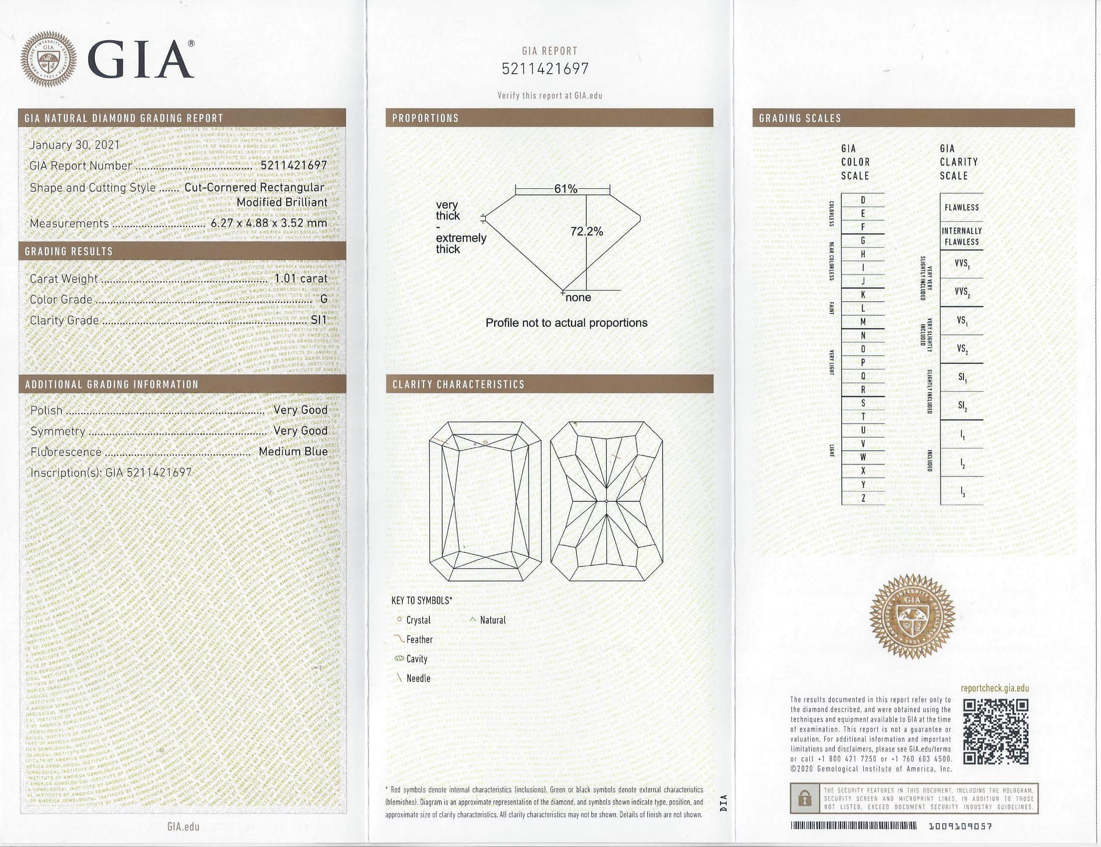 1ct GIA CERTIFIED G SI1 RADIANT CUT DIAMOND LOOSE NATURAL ENGAGEMENT PRINCESS