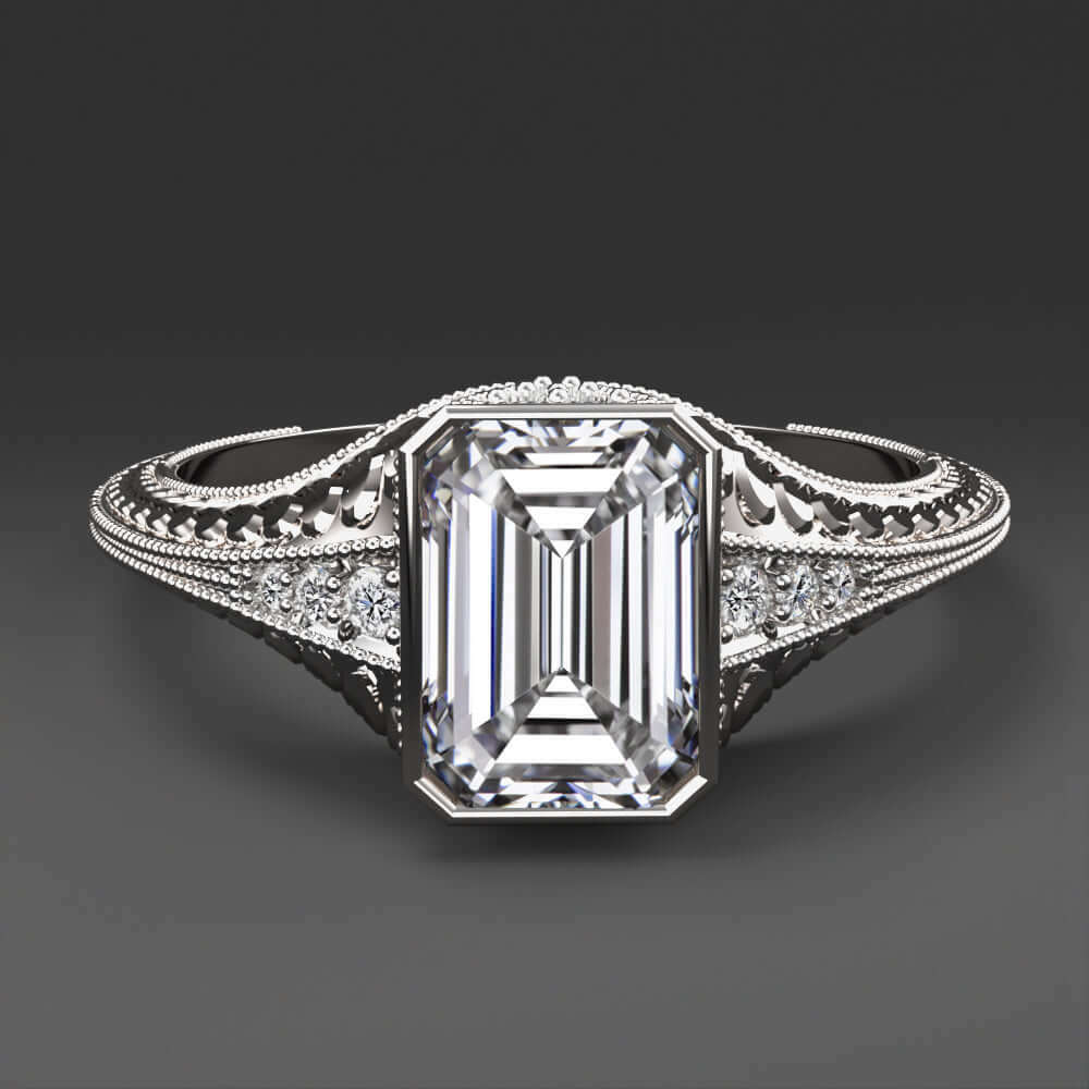 1.5ct LAB CREATED DIAMOND ENGAGEMENT RING CERTIFIED F VS2 VINTAGE EMERALD CUT