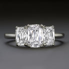 This striking ring features three substantial criss cut lab grown diamonds set in an elegantly simple 3 stone design. The ring is sleek and minimal in design and lets the stunning, unique cuts shine!