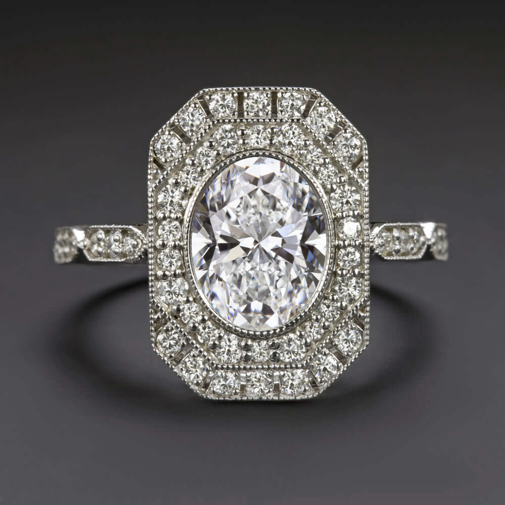 2 CARAT LAB CREATED DIAMOND COCKTAIL RING VINTAGE STYLE ART DECO OVAL SHAPE HALO