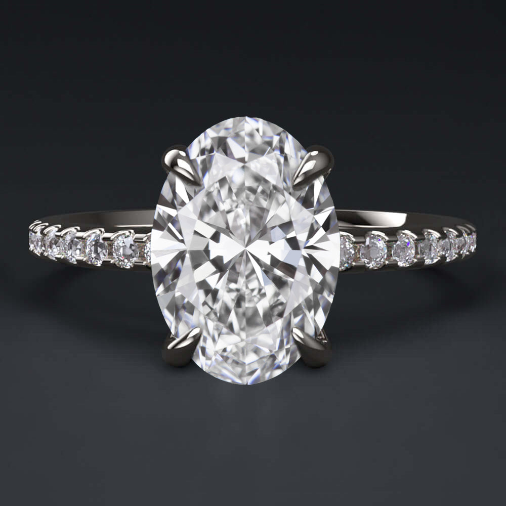 This classic diamond ring has a time tested solitaire design and features a gorgeous and high quality 3 carat oval cut lab diamond!