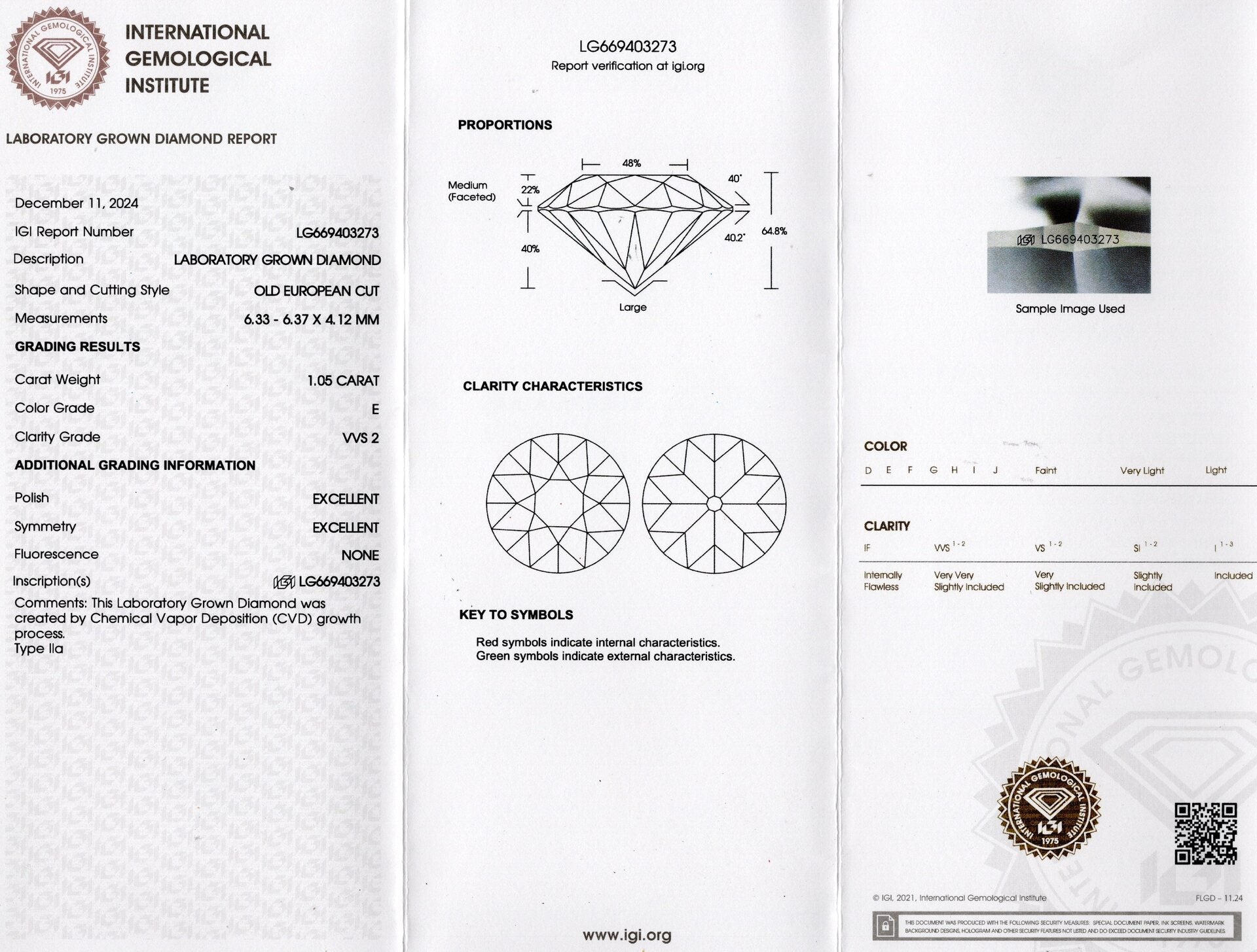 1.05ct OLD EUROPEAN CUT LAB CREATED DIAMOND CERTIFIED E VVS2 VINTAGE STYLE 1ct