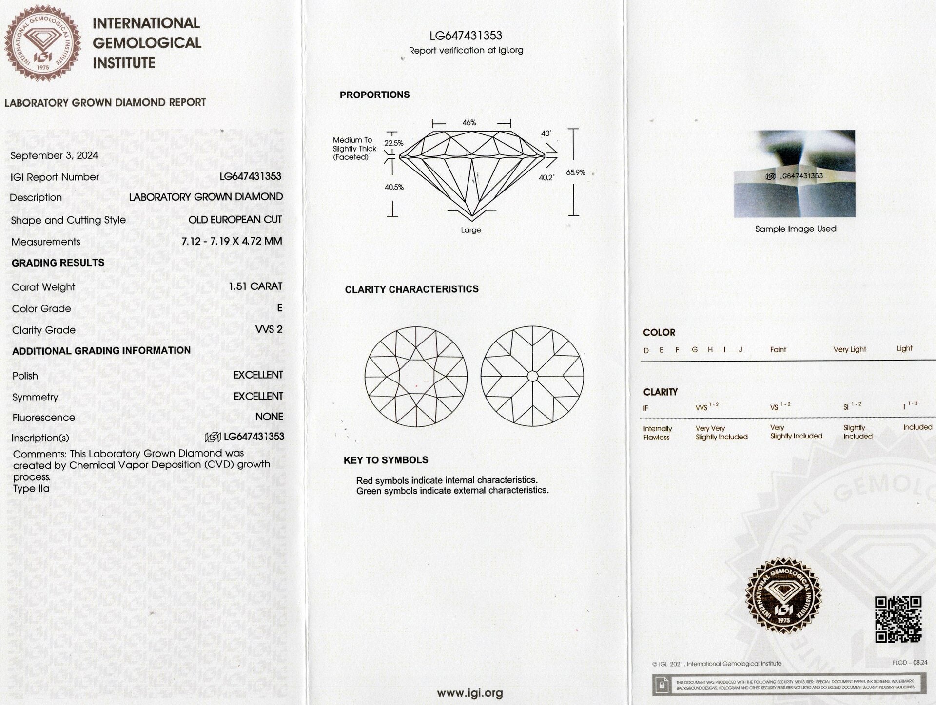 1.51ct OLD EUROPEAN CUT LAB CREATED DIAMOND CERTIFIED E VVS2 VINTAGE STYLE 1.5ct