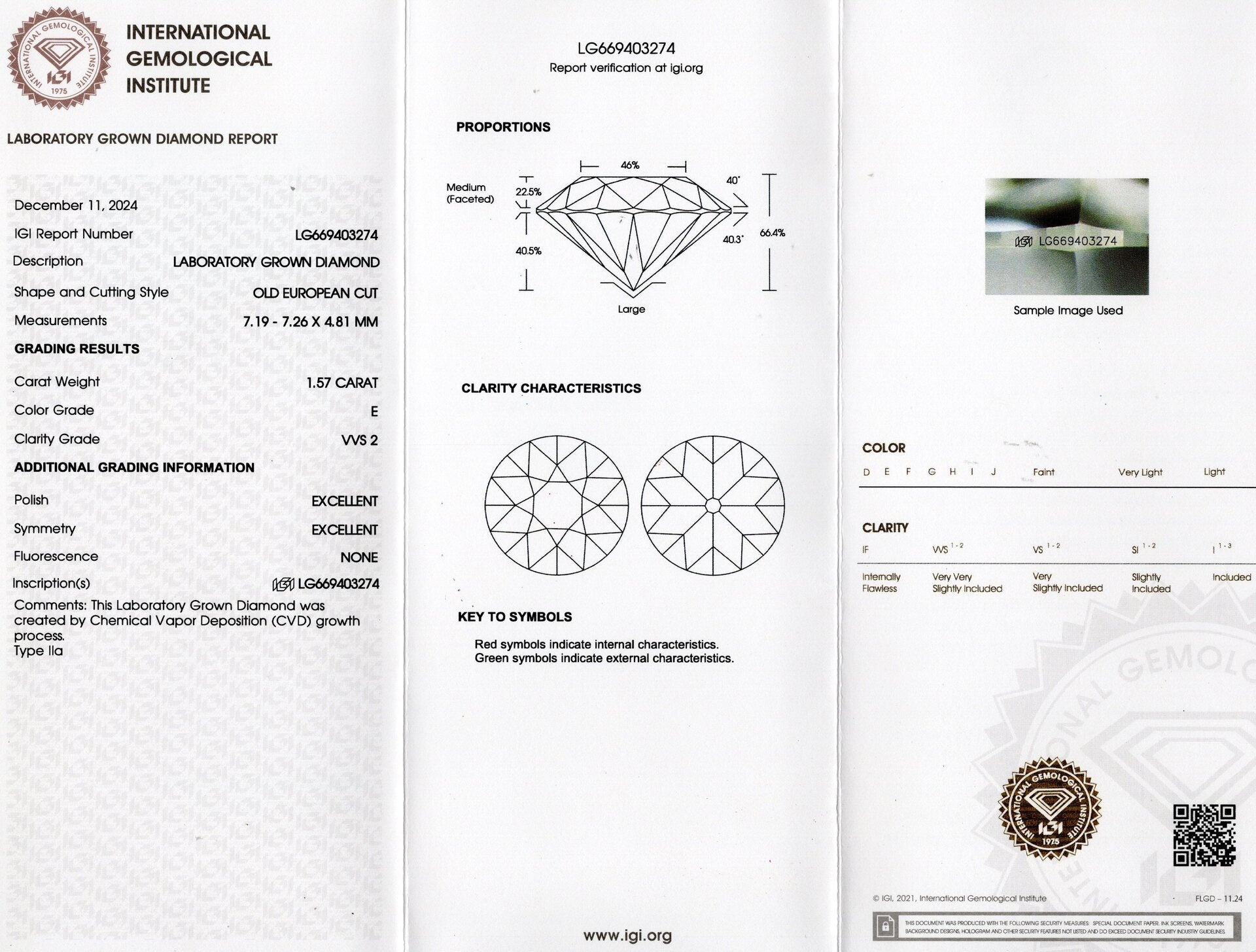 1.57ct OLD EUROPEAN CUT LAB CREATED DIAMOND CERTIFIED E VVS2 VINTAGE STYLE 1.5ct