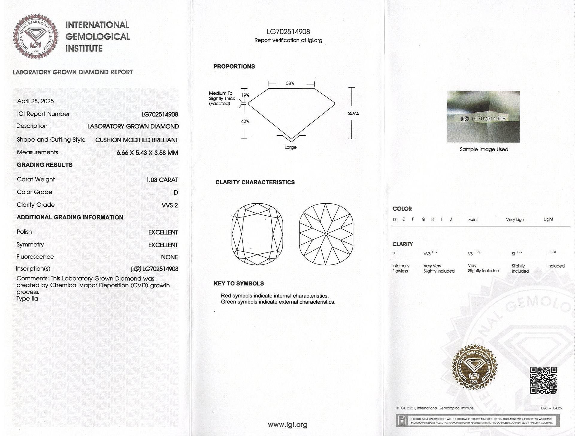 1 CARAT OLD MINE CUT LAB CREATED DIAMOND CERTIFIED D VVS2 ELONGATED CUSHION 1ct