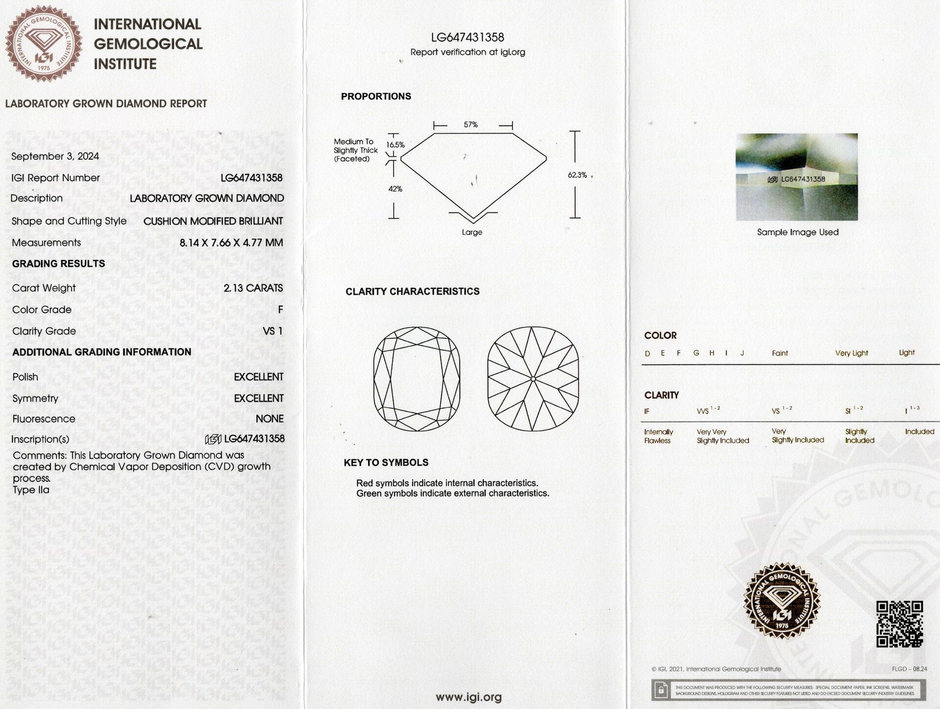 2.13c OLD MINE CUT LAB CREATED DIAMOND CERTIFIED F VS1 CUSHION VINTAGE STYLE 2ct