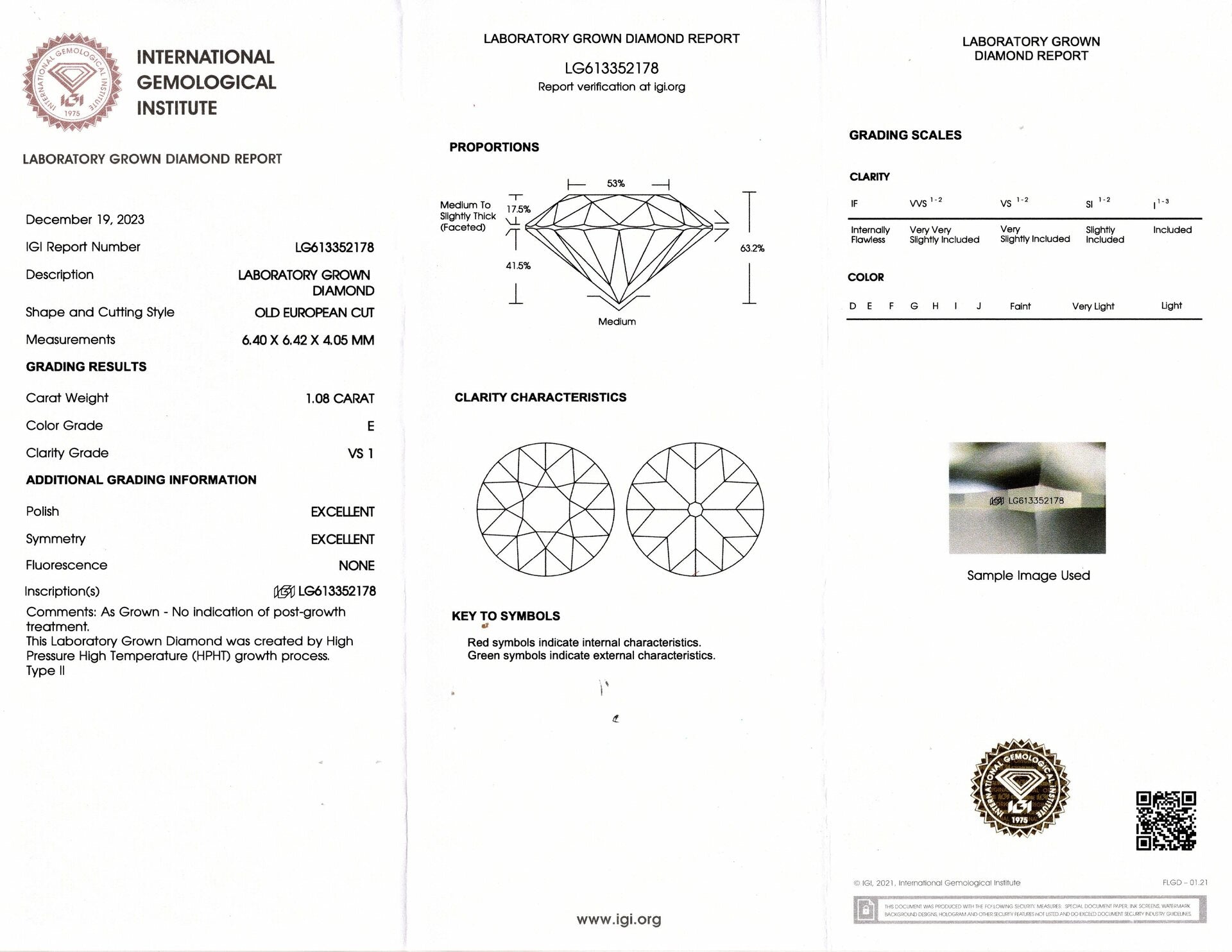 2.15ct OLD EUROPEAN CUT LAB CREATED DIAMOND STUD EARRINGS CERTIFIED E VVS 2ct