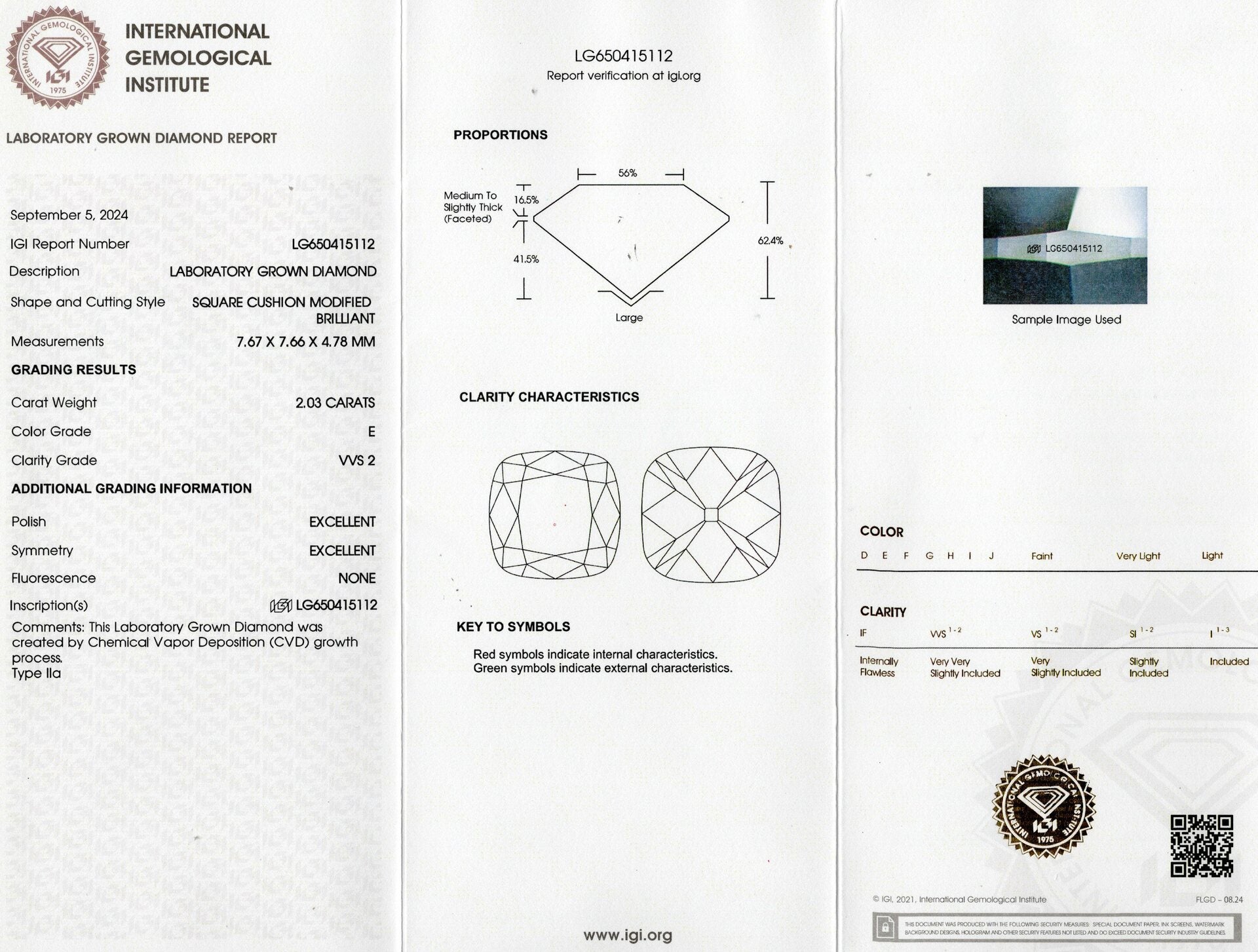 2 CARAT OLD MINE CUT LAB CREATED DIAMOND CERTIFIED E VVS2 CUSHION VINTAGE STYLE