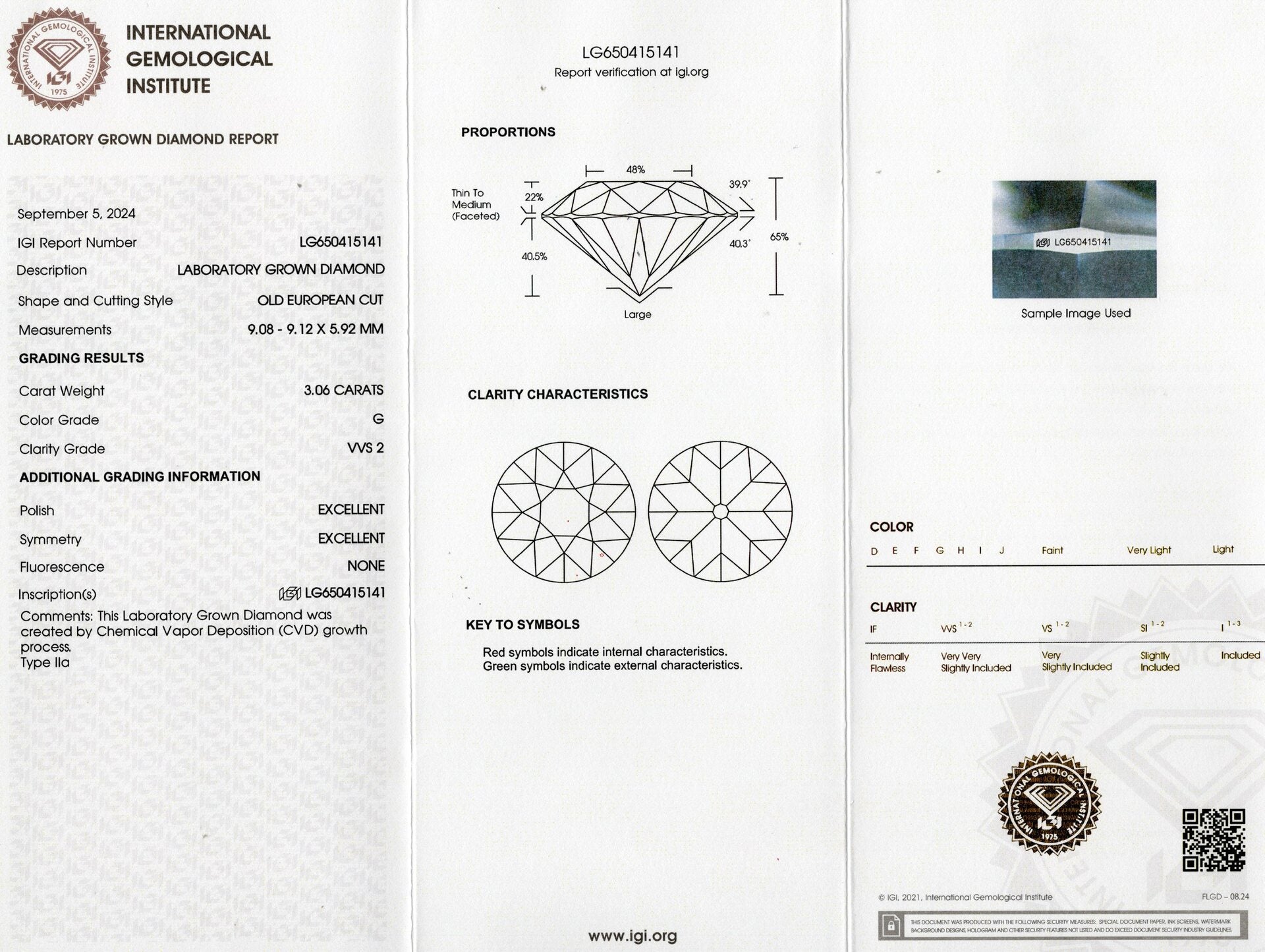 3.06ct OLD EUROPEAN CUT LAB CREATED DIAMOND CERTIFIED G VVS2 VINTAGE STYLE 3ct