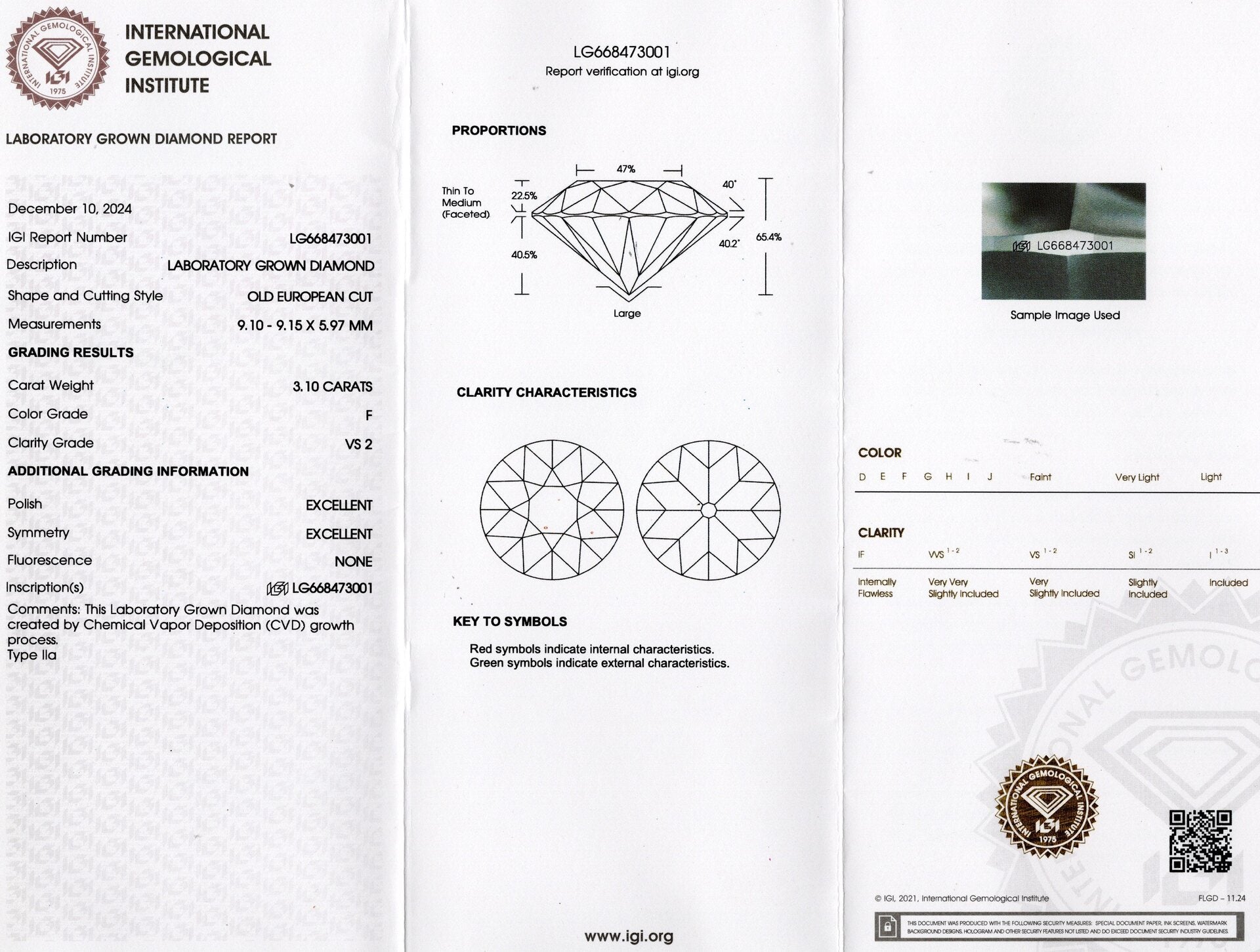 3.10ct OLD EUROPEAN CUT LAB CREATED DIAMOND CERTIFIED F VS2 VINTAGE STYLE 3ct