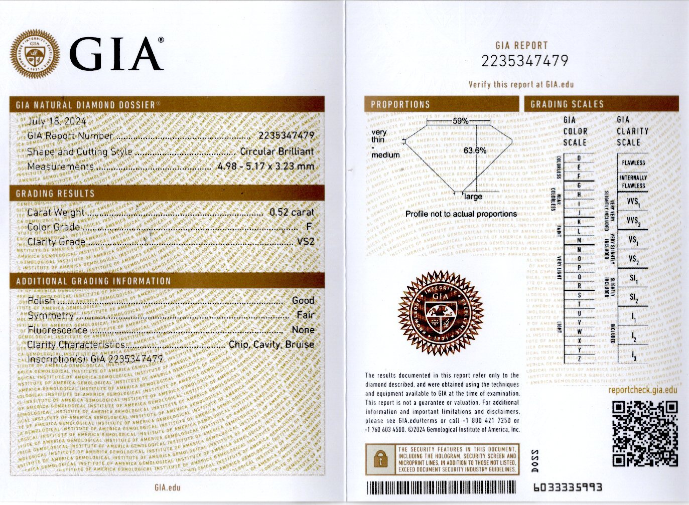 0.52ct OLD EUROPEAN CUT DIAMOND GIA CERTIFIED F VS2 LOOSE NATURAL VINTAGE ESTATE