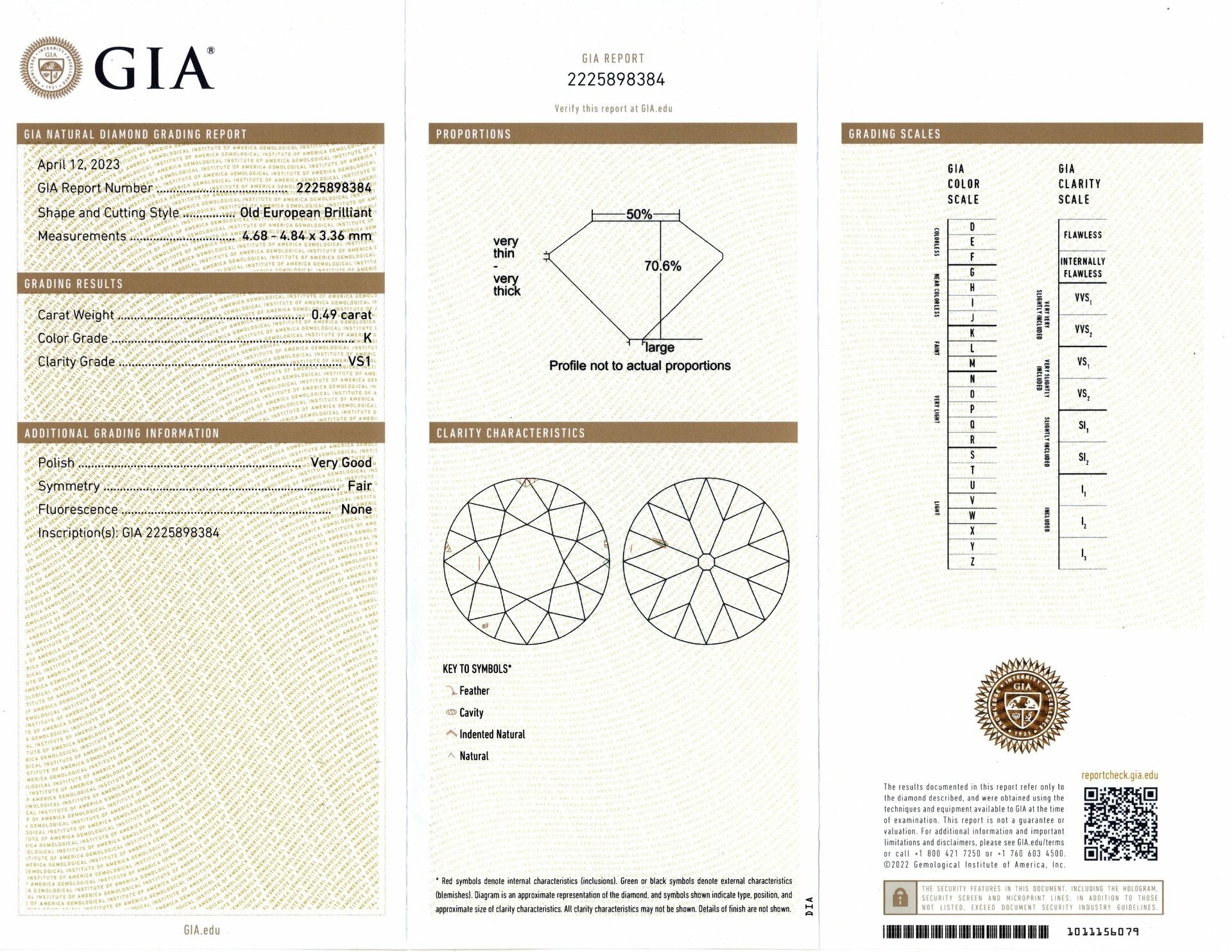 1/2 CARAT OLD EUROPEAN CUT DIAMOND GIA CERTIFIED K VS1 VINTAGE LOOSE NATURAL