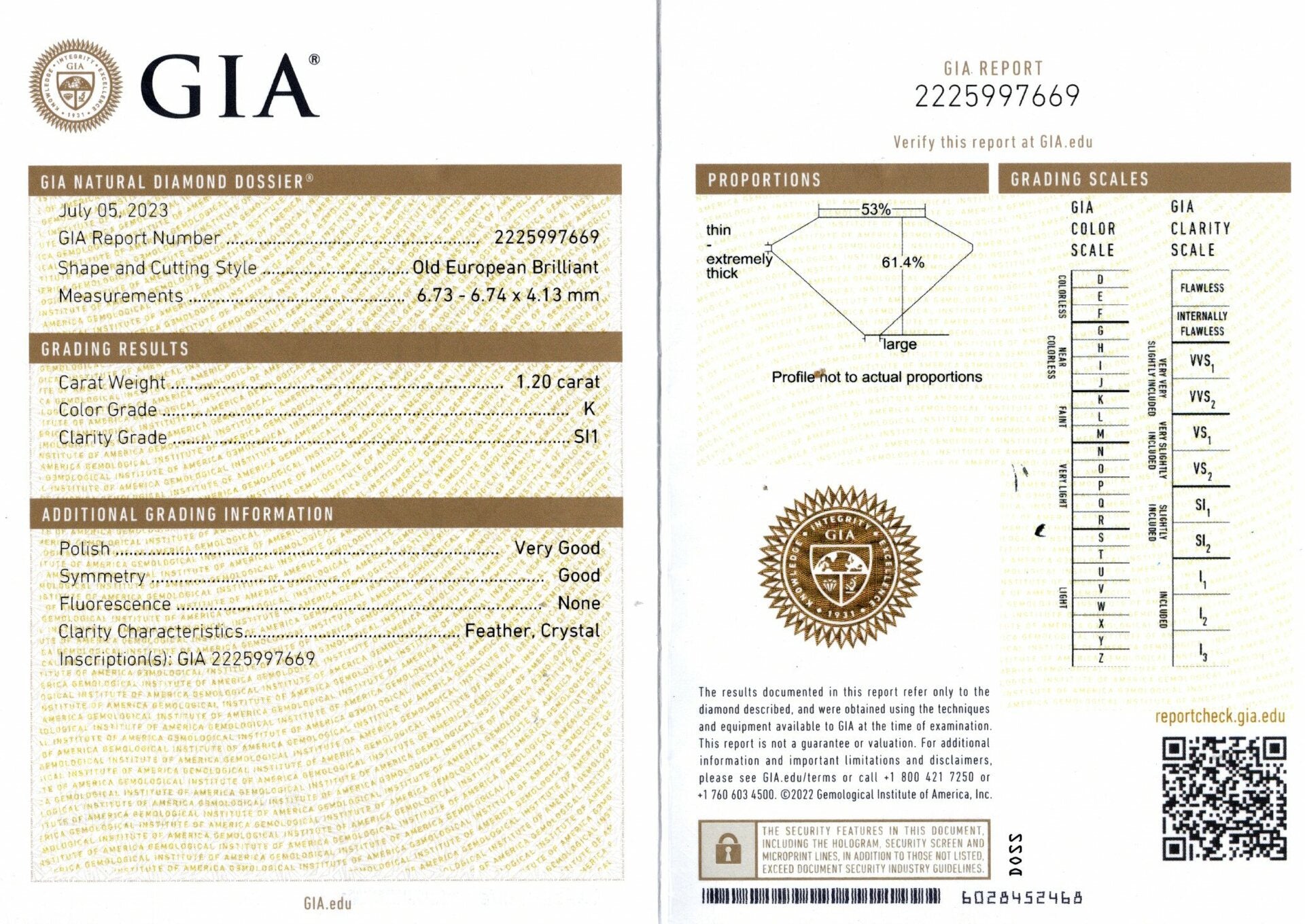 1.20ct OLD EUROPEAN CUT DIAMOND GIA CERTIFIED K SI1 NATURAL VINTAGE LOOSE ESTATE