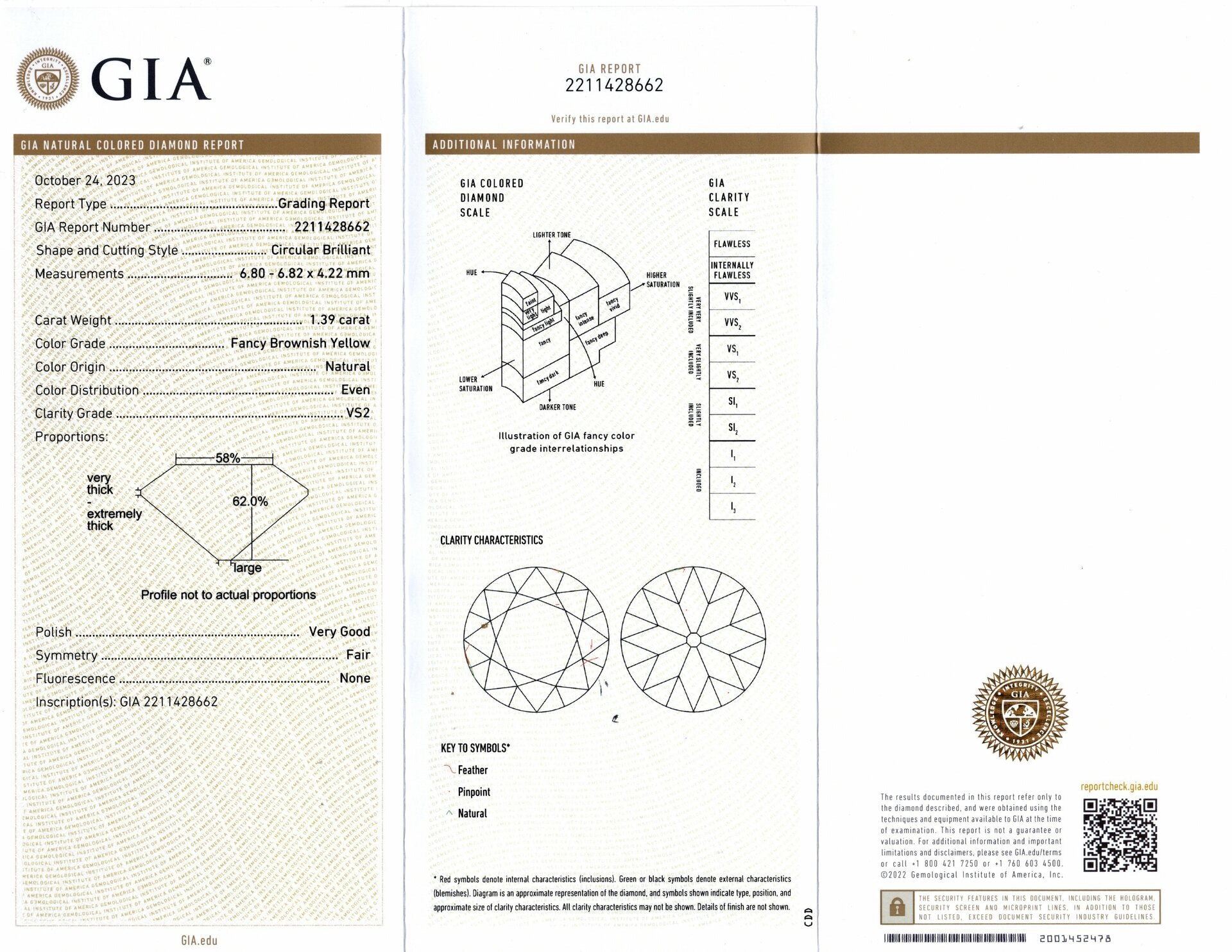 1.39ct OLD EUROPEAN CUT DIAMOND GIA CERTIFIED FANCY CHAMPAGNE VS2 VINTAGE ESTATE