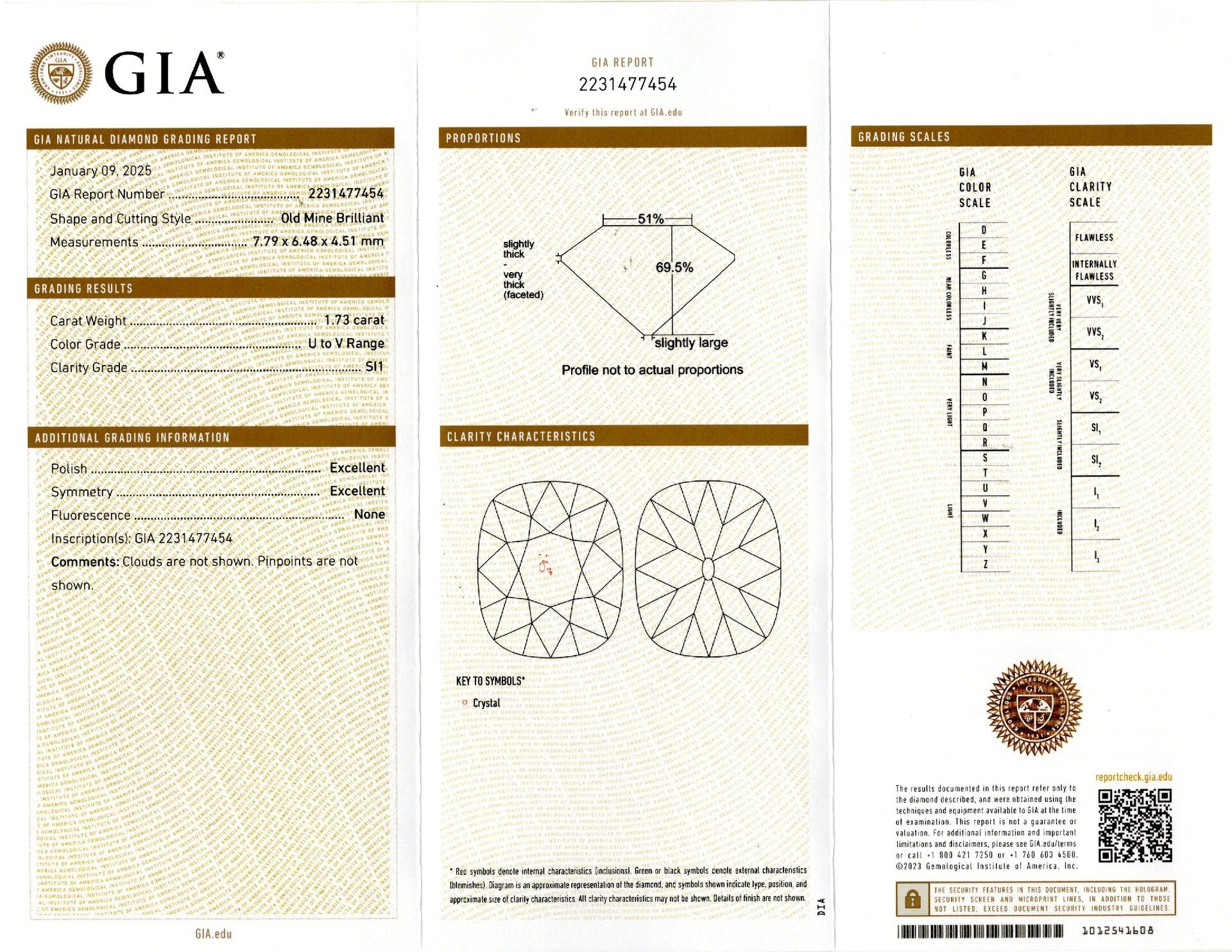 1.73ct OLD MINE CUT DIAMOND GIA CERTIFIED U-V SI1 ELONGATED CUSHION BRILLIANT