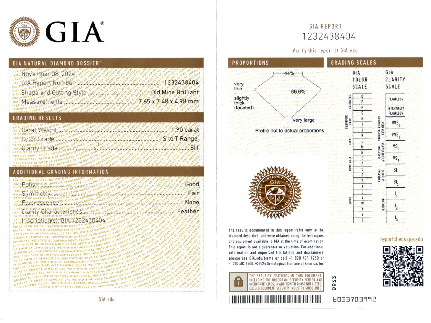 1.90ct OLD MINE CUT DIAMOND GIA CERTIFIED S-T SI1 ANTIQUE CUSHION BRILLIANT 2ct