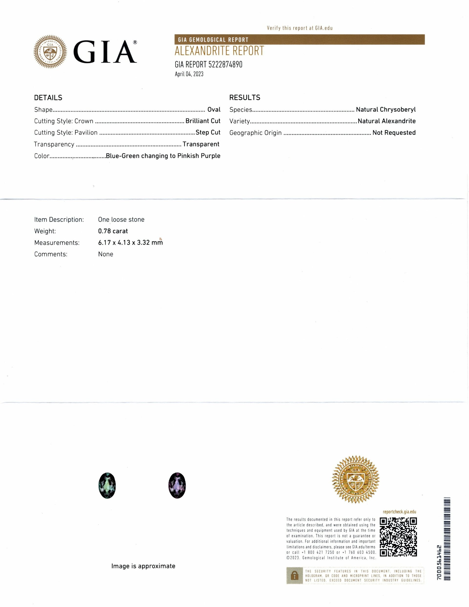 ALEXANDRITE GIA CERTIFIED GREEN TO PINK PURPLE OVAL NATURAL COLOR CHANGE LOOSE