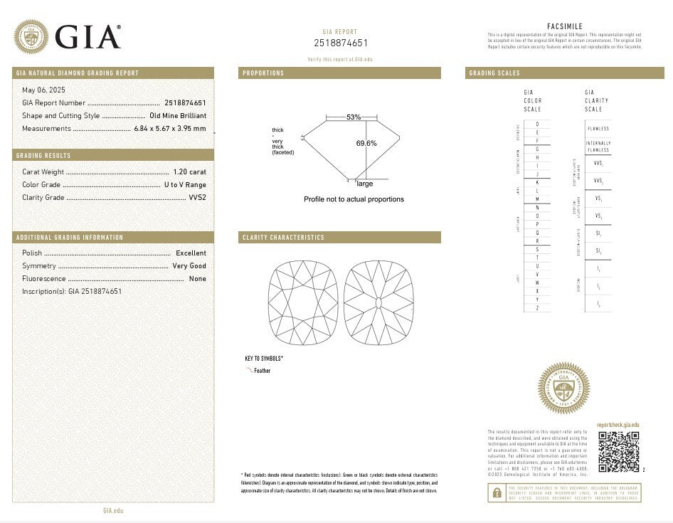 1.20ct OLD MINE CUT DIAMOND GIA CERTIFIED U-V VVS2 ELONGATED CUSHION BRILLIANT
