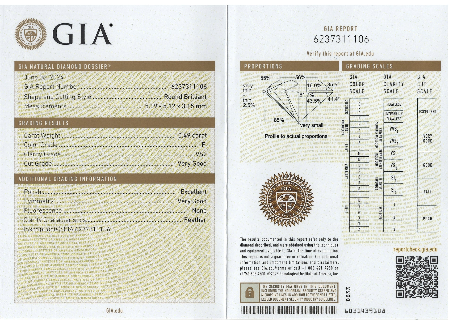 1/2ct DIAMOND GIA CERTIFIED F VS2 LOOSE NATURAL ROUND BRILLIANT CUT ENGAGEMENT