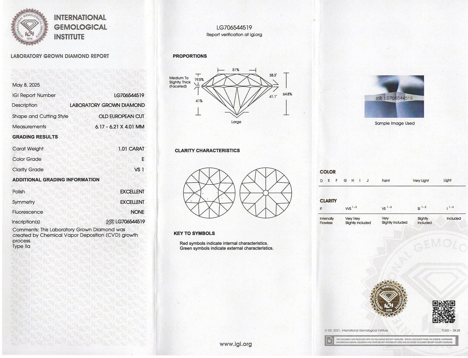 - 1.01 carat lab grown diamond