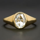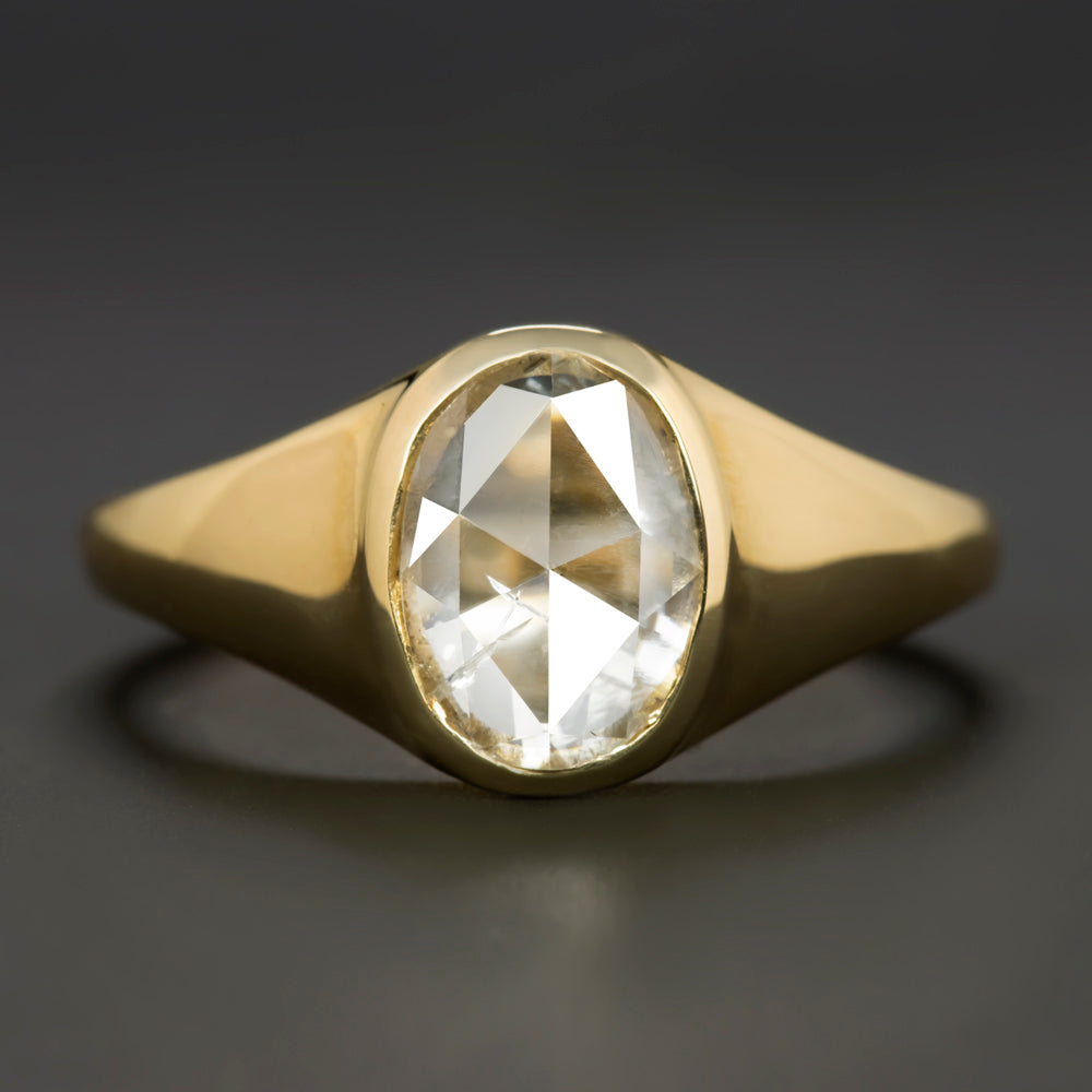 0.88ct ROSE CUT DIAMOND SIGNET RING OVAL SHAPE 14k YELLOW GOLD BEZEL NATURAL