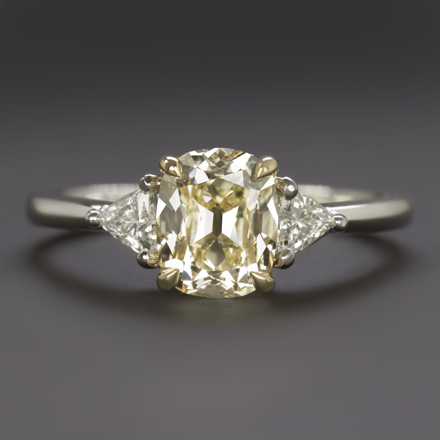 1.5ct OLD MINE CUT DIAMOND ENGAGEMENT RING FANCY YELLOW GIA CERTIFIED PLATINUM