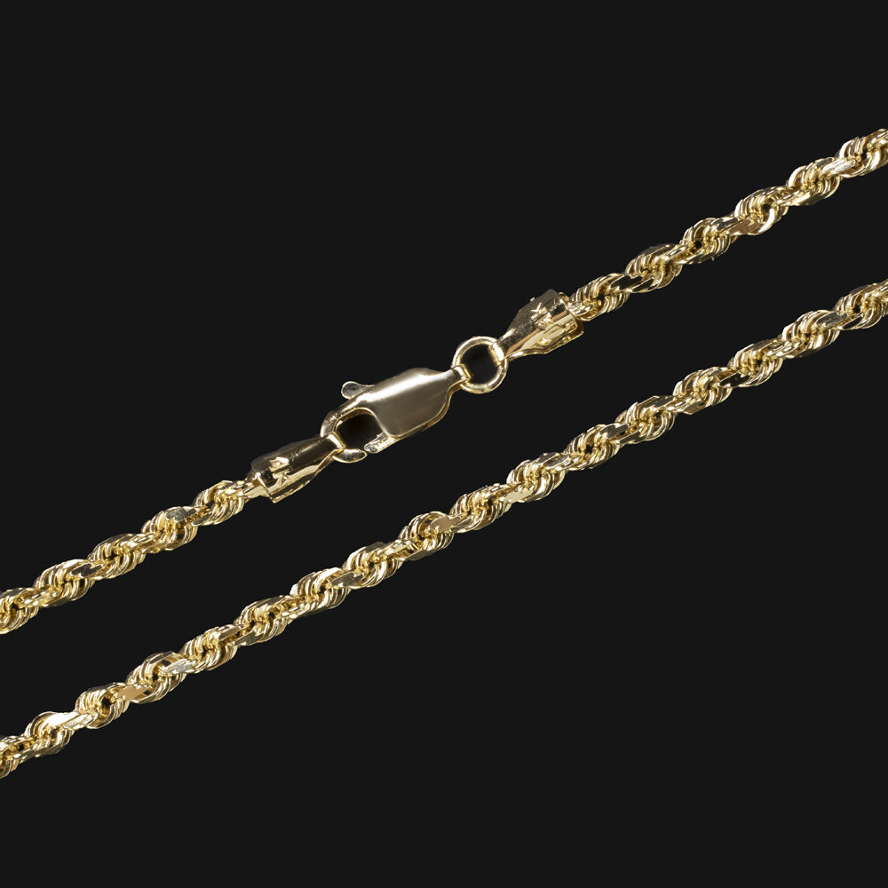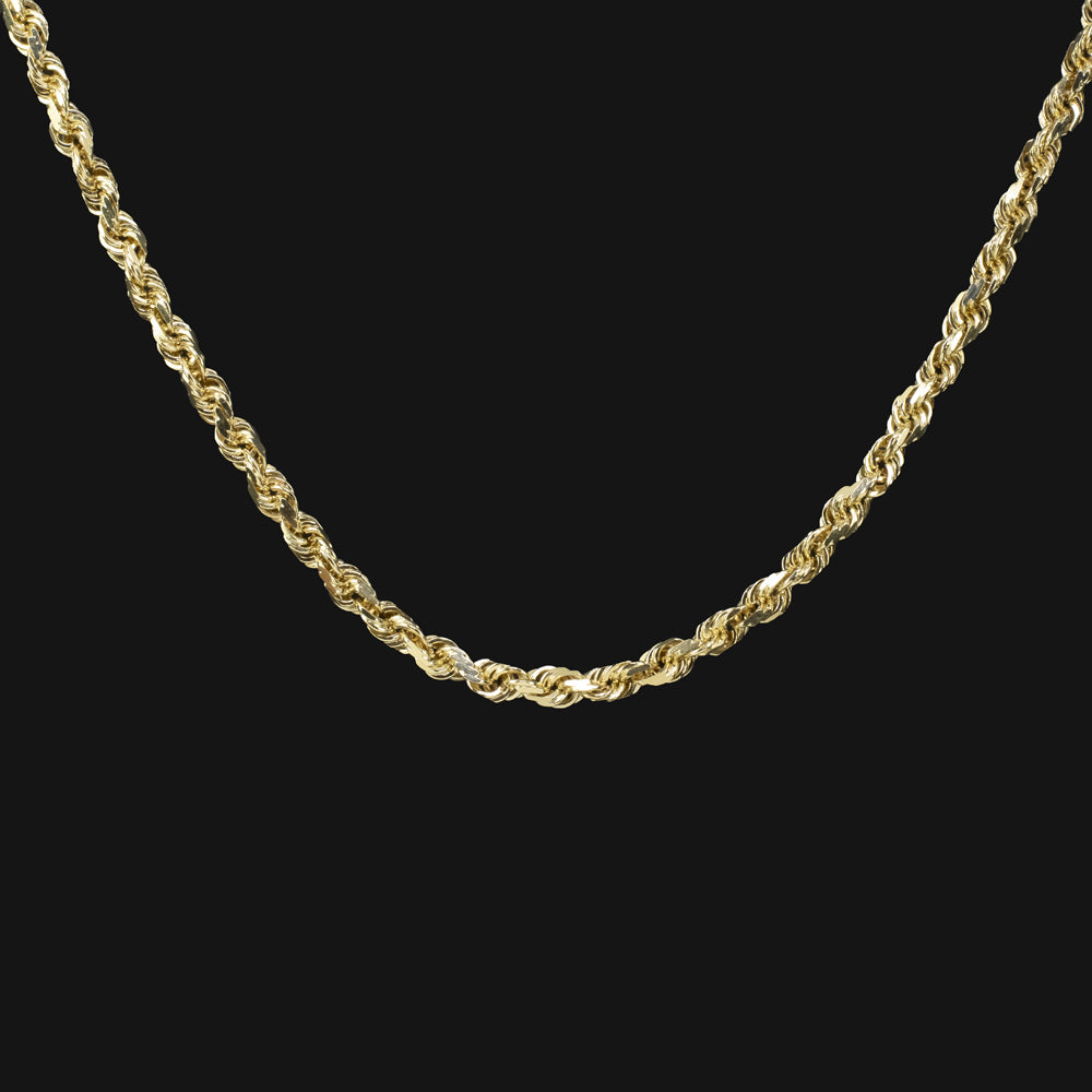This 14k yellow gold rope chain has a substantial feel and sturdy construction.