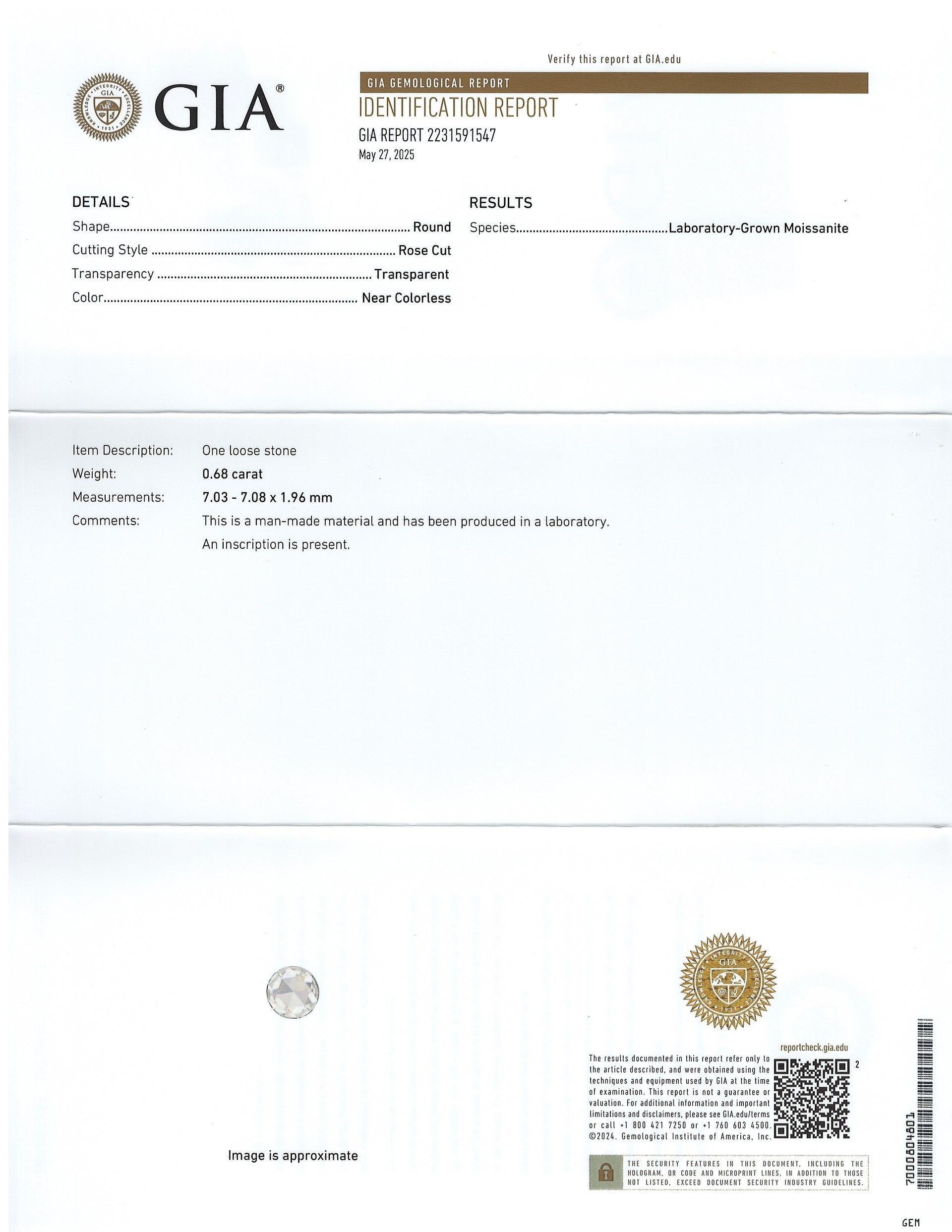 0.68ct GIA CERTIFIED MOISSANITE 7mm ROUND ROSE CUT NEAR COLORLESS LOOSE STONE