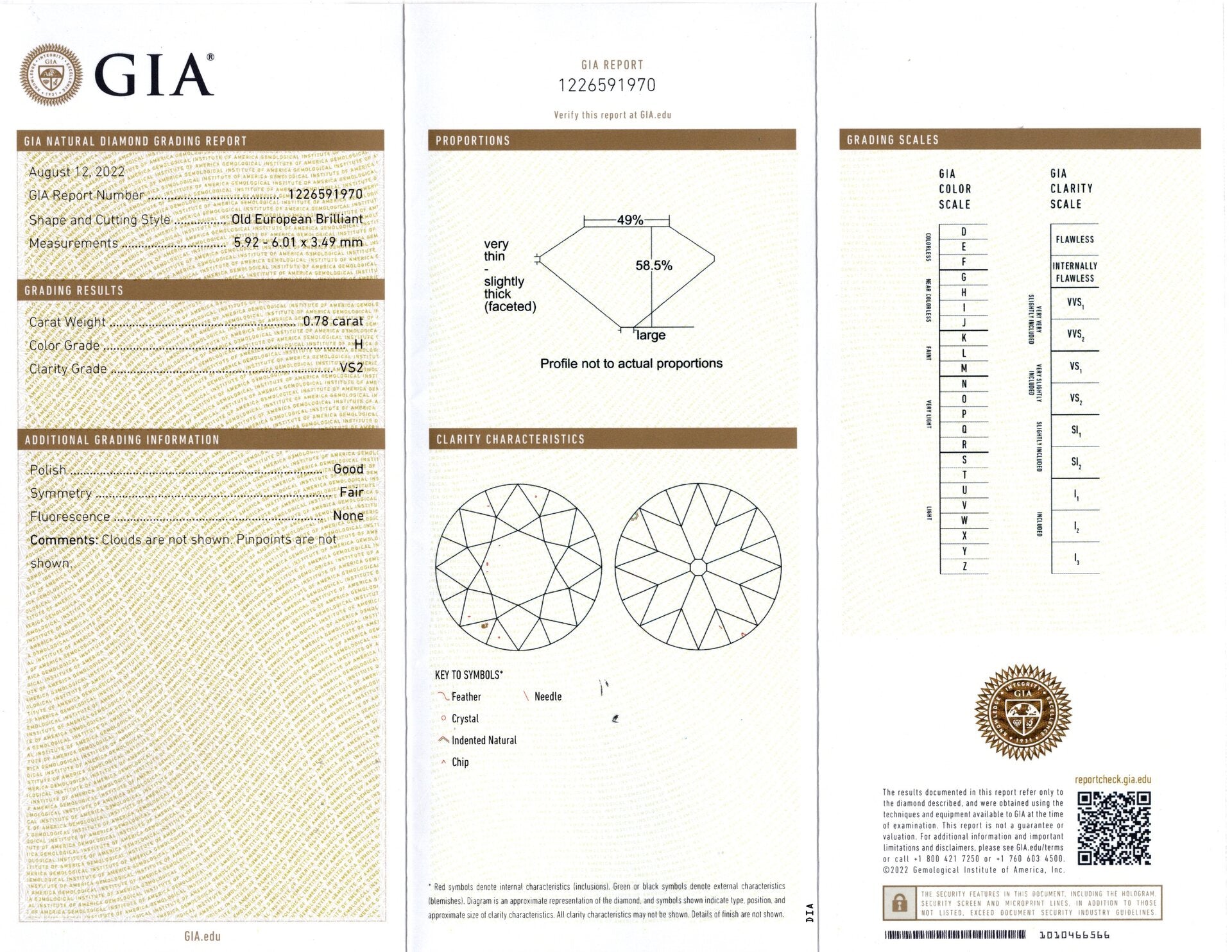 - Vibrant and very high quality 0.78ct old European cut diamond center