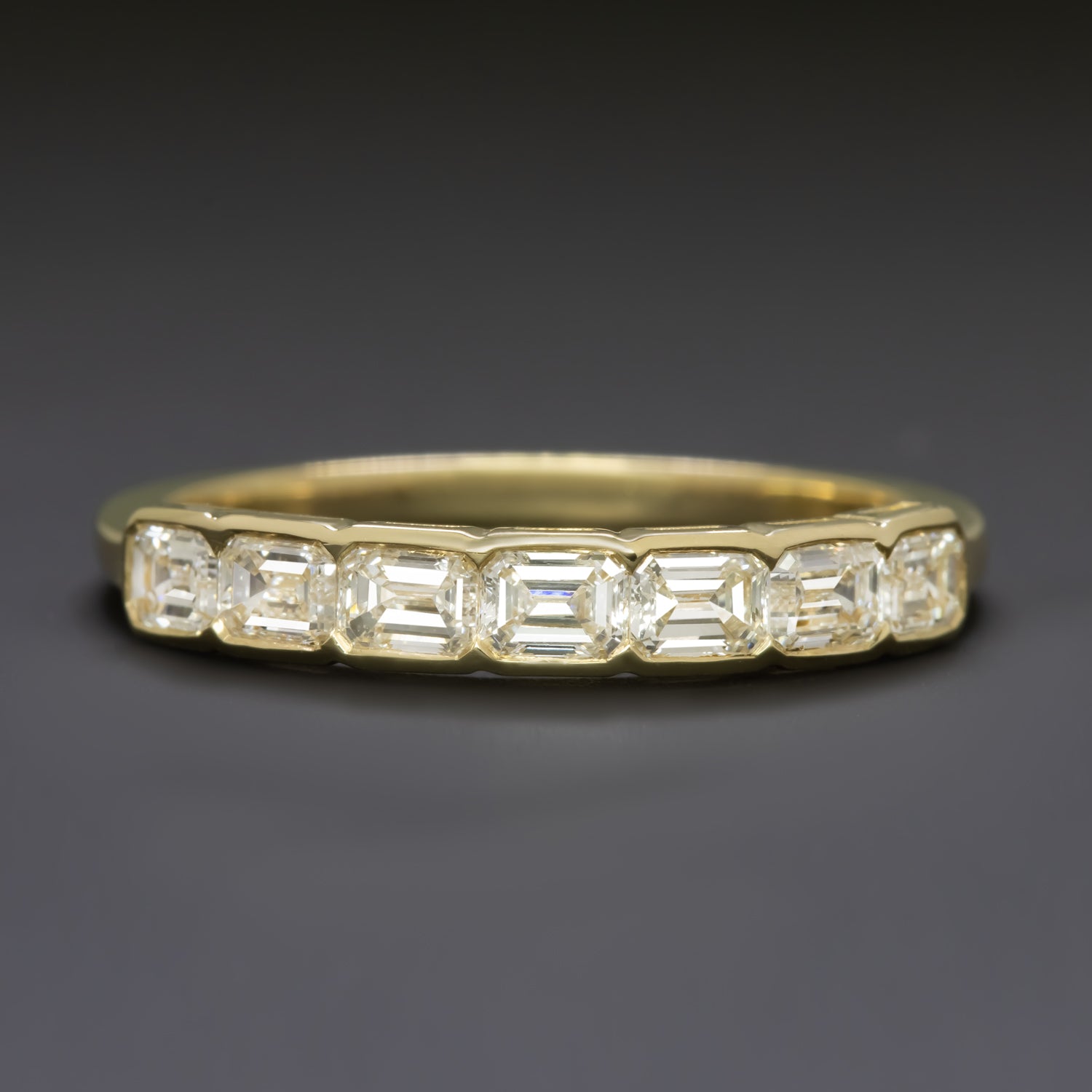 0.85ct EMERALD CUT DIAMOND WEDDING BAND BEZEL RING YELLOW GOLD EAST WEST CHANNEL