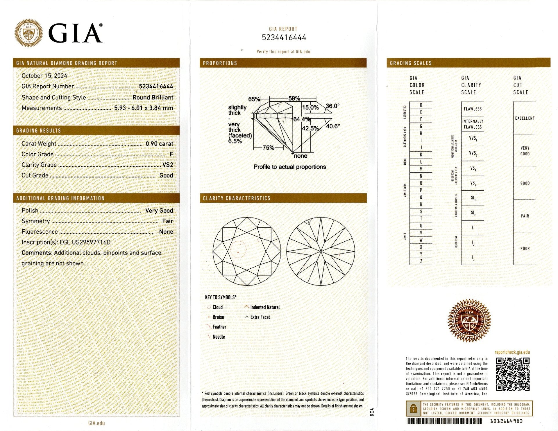 0.90ct DIAMOND SAPPHIRE ENGAGEMENT RING GIA CERTIFIED F VS2 VINTAGE STYLE ROUND