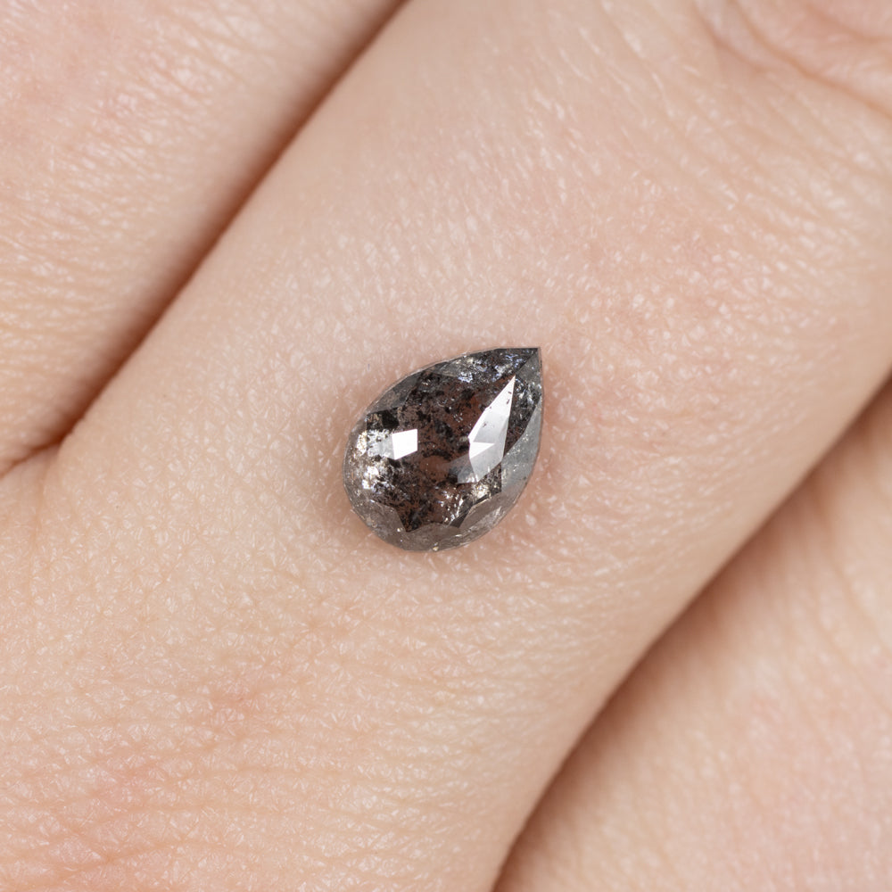 1.24ct NATURAL DIAMOND PEAR SHAPE ROSE CUT RUSTIC SALT AND PEPPER TEARDROP LOOSE