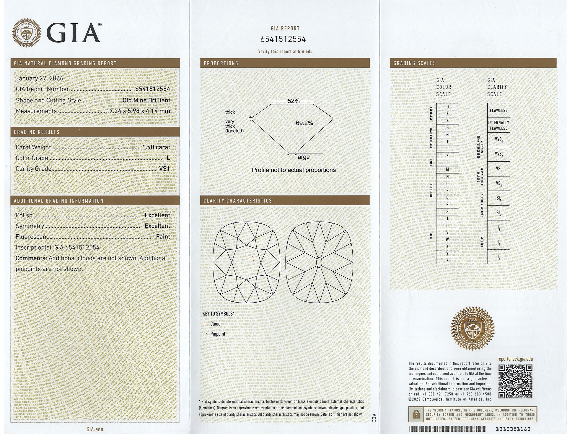 1.40ct OLD MINE CUT DIAMOND GIA CERTIFIED L VS1 ELONGATED CUSHION BRILLIANT