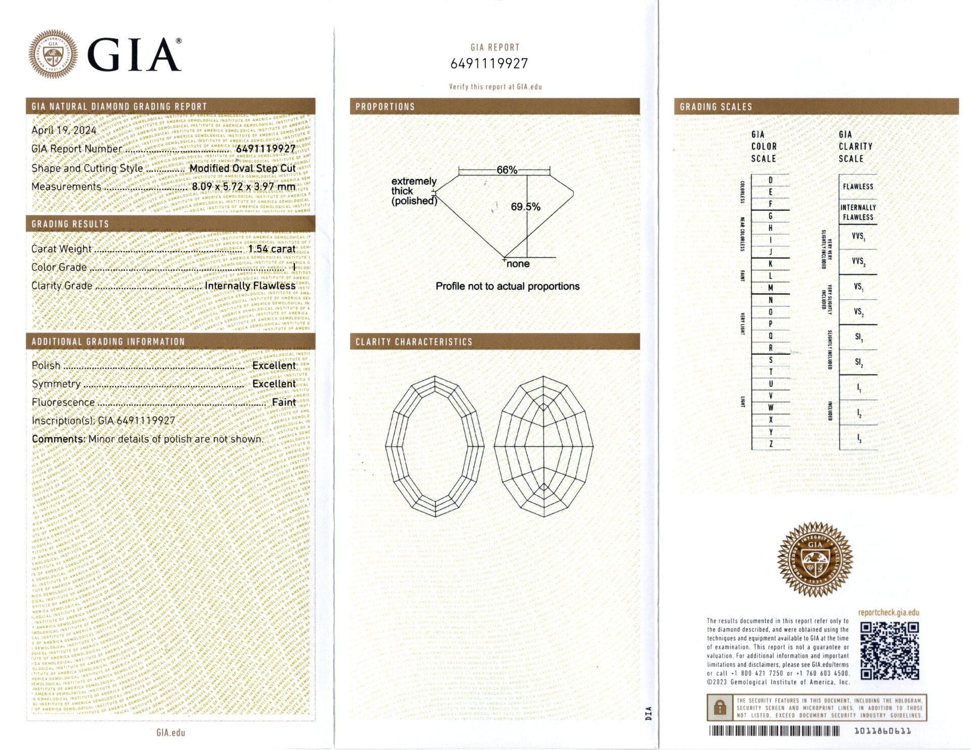 1.5ct GIA CERTIFIED I FLAWLESS DIAMOND OVAL STEP CUT LOOSE NATURAL GEOMETRIC