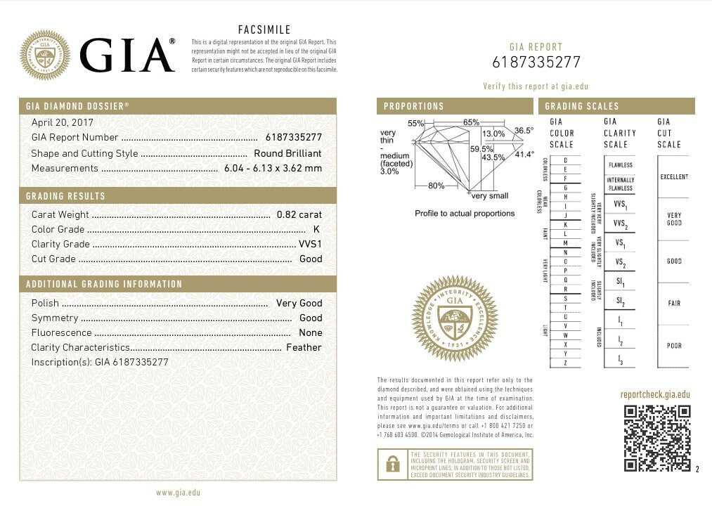 - Bright white and eye clean with grades of G-H VS1-SI1