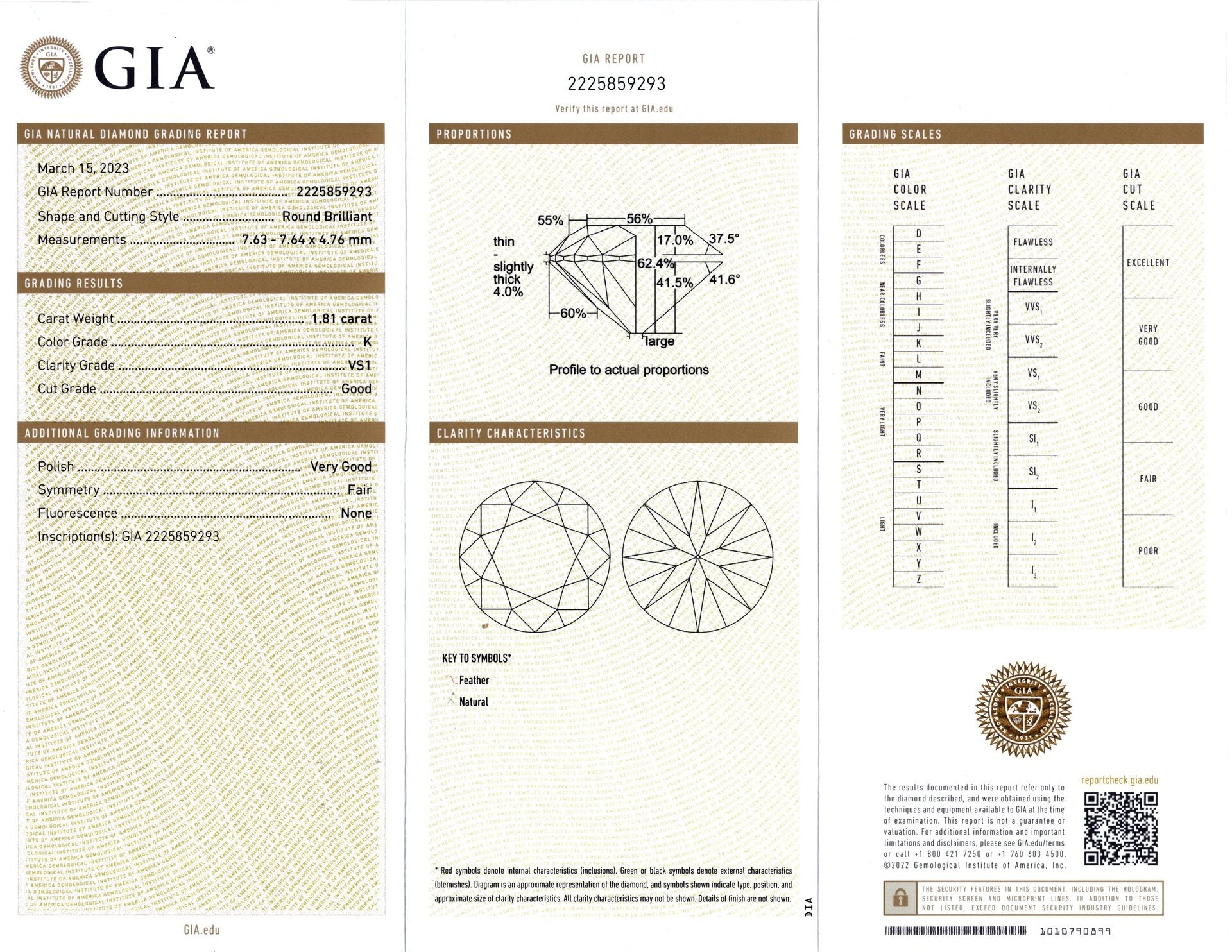 1.81ct OLD EUROPEAN CUT DIAMOND SAPPHIRE RING GIA CERTIFIED K VS1 VINTAGE STYLE