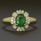 1.90ct EMERALD DIAMOND HALO COCKTAIL RING 14k YELLOW GOLD NATURAL GREEN OVAL