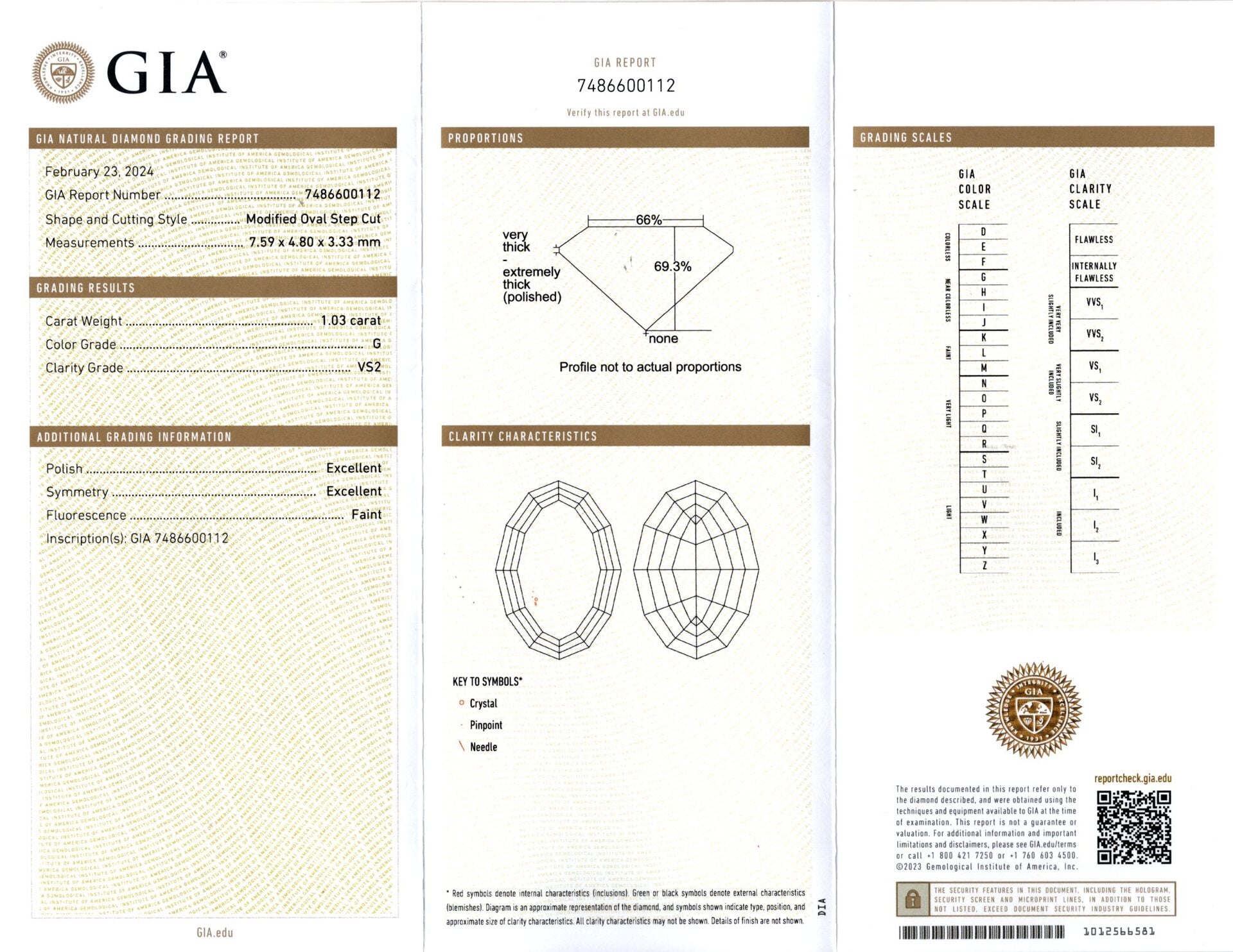 1 CARAT GIA CERTIFIED G VS2 DIAMOND OVAL STEP CUT LOOSE NATURAL GEOMETRIC 1ct