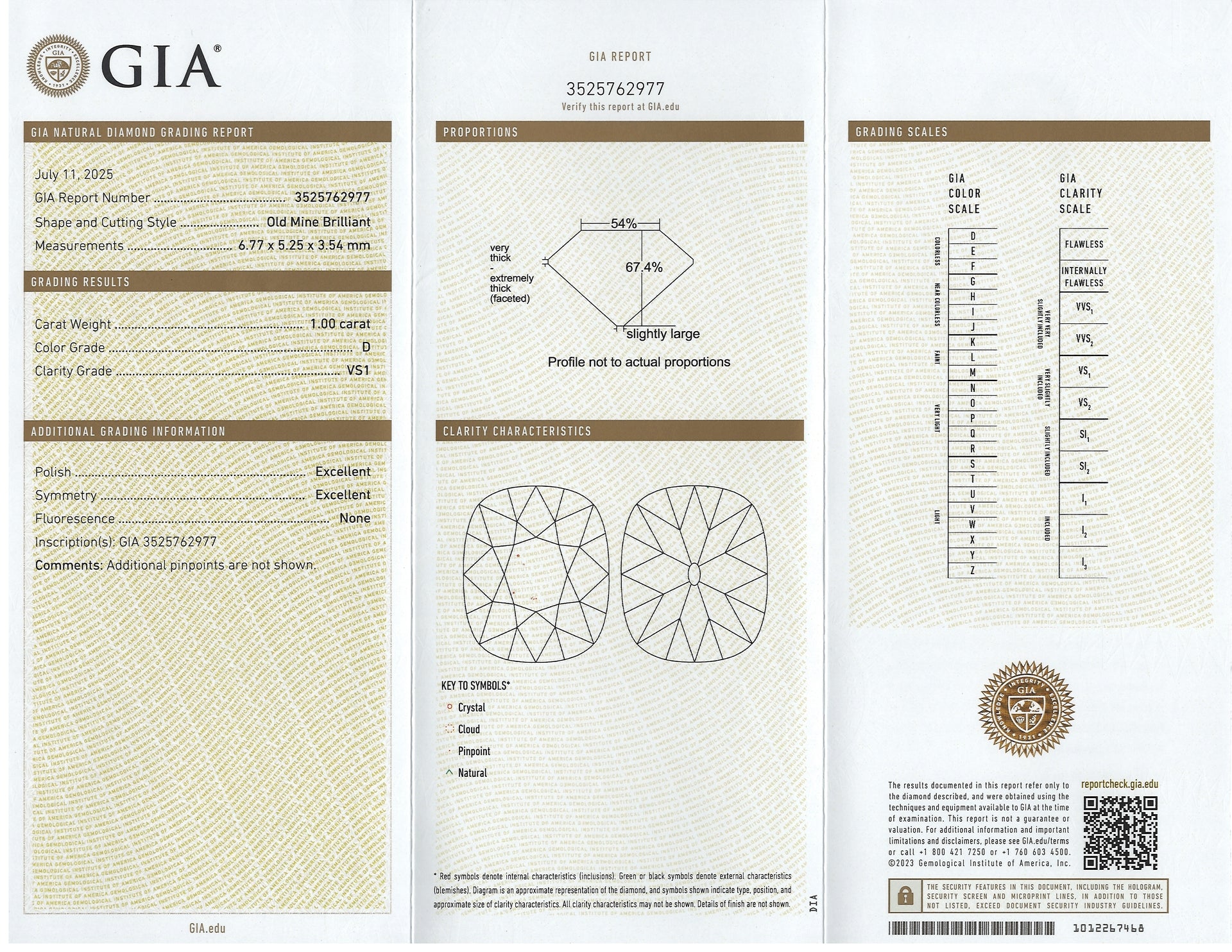 1 CARAT OLD MINE CUT DIAMOND GIA CERTIFIED D VS1 ELONGATED CUSHION BRILLIANT 1ct
